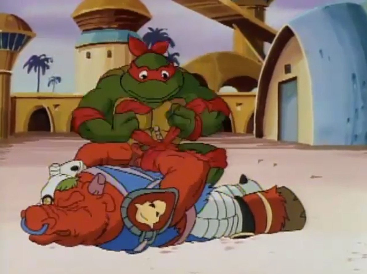 Trainant dans les rues de New York, les deux mutants découvrirent les tortues et leur livrèrent bataille. Au cours du combat, les six mutants furent capturés par Kerma, une tortue venue d’une autre planète qui était à la recherche d’aide pour venir à bout d’un mystérieux problème sur sa planète. Les tortues réussirent à se libérer et se rendirent compte que Kerma n’était pas une mauvaise personne.