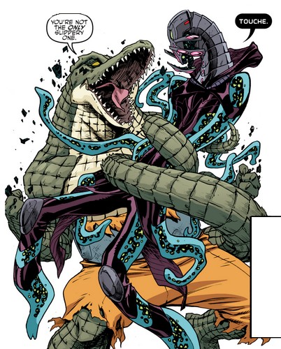 Son corps est décrit comme gluant et pouvant se contorsionner dans tous les sens. Il possède malgré tout ce qui semble être une sorte de squelette central, que Donatello parvient à immobiliser d’une prise de catch (Dimension X #3). Ses tentacules pouvaient repousser à volonté et secréter une matière visqueuse noire pouvant devenir solide. Il s’en servit comme projectile ou pour faire des armes pour combattre ses ennemis.