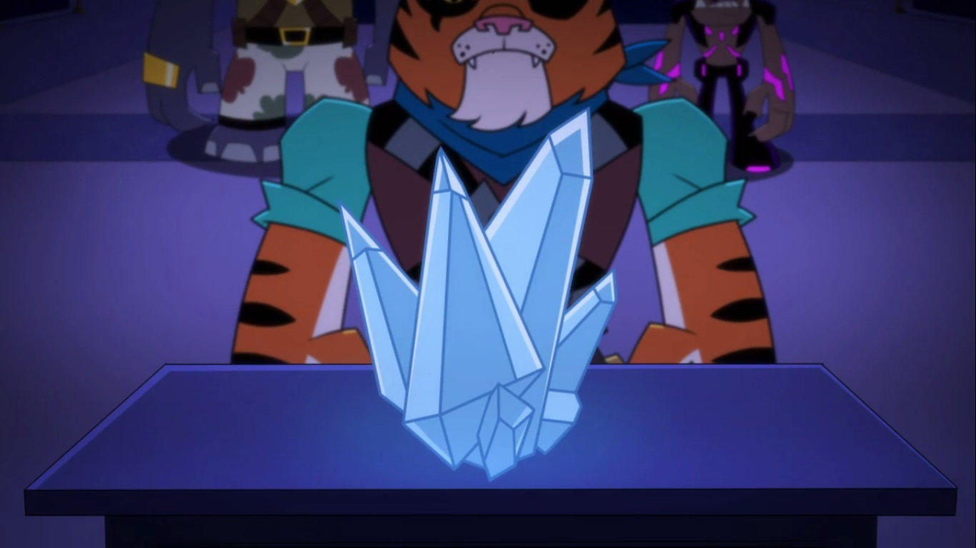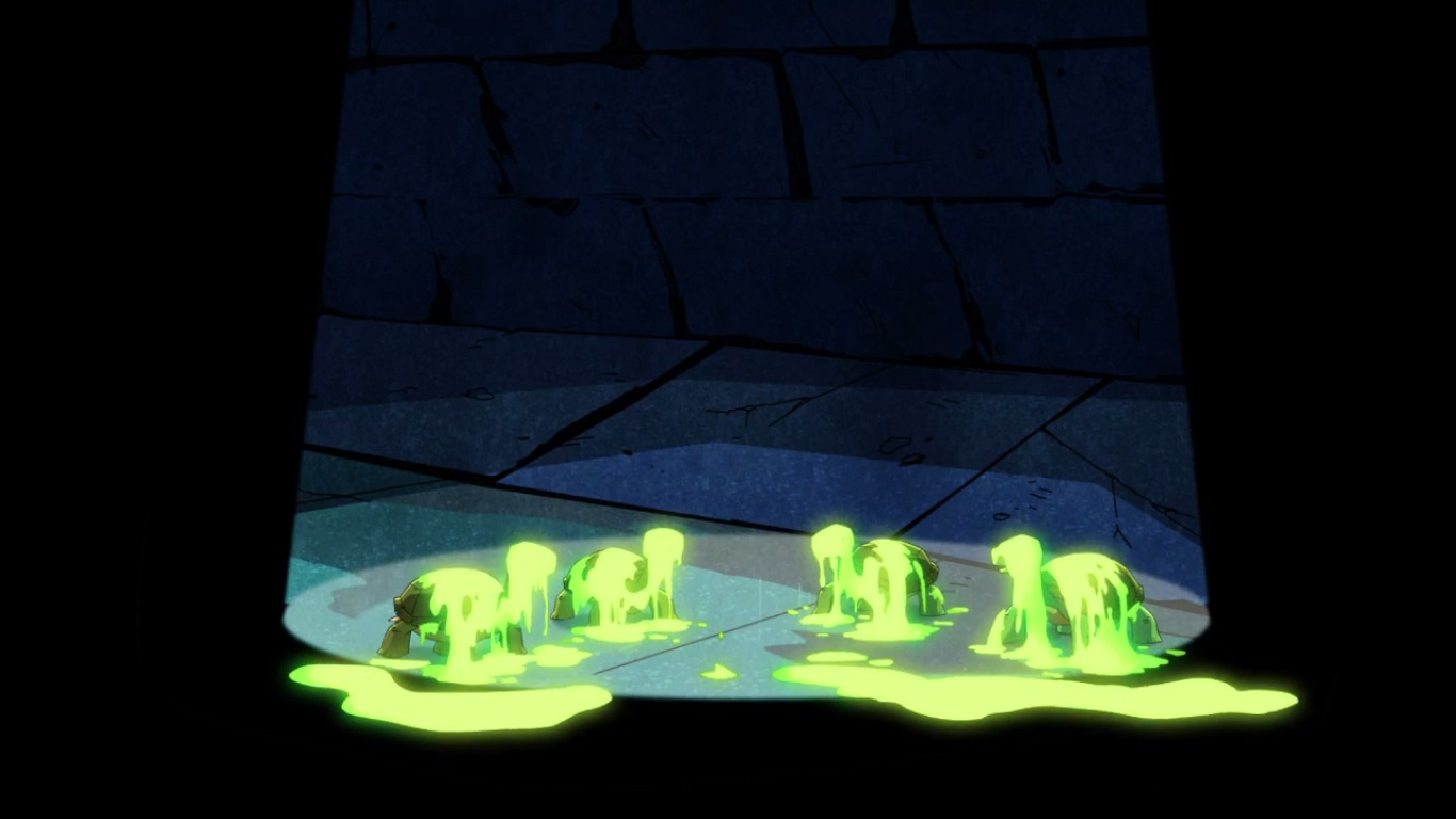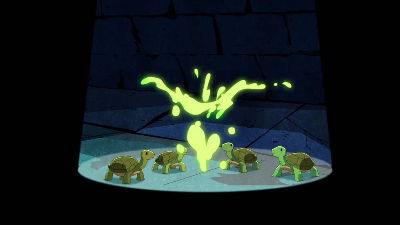De retour dans les égouts, les tortues allèrent dans le laboratoire de Donatello, qui était en train de fixer le cristal sur sa dernière invention. D’après lui, la kronite était bien plus puissante que les cristaux des Kraangs.