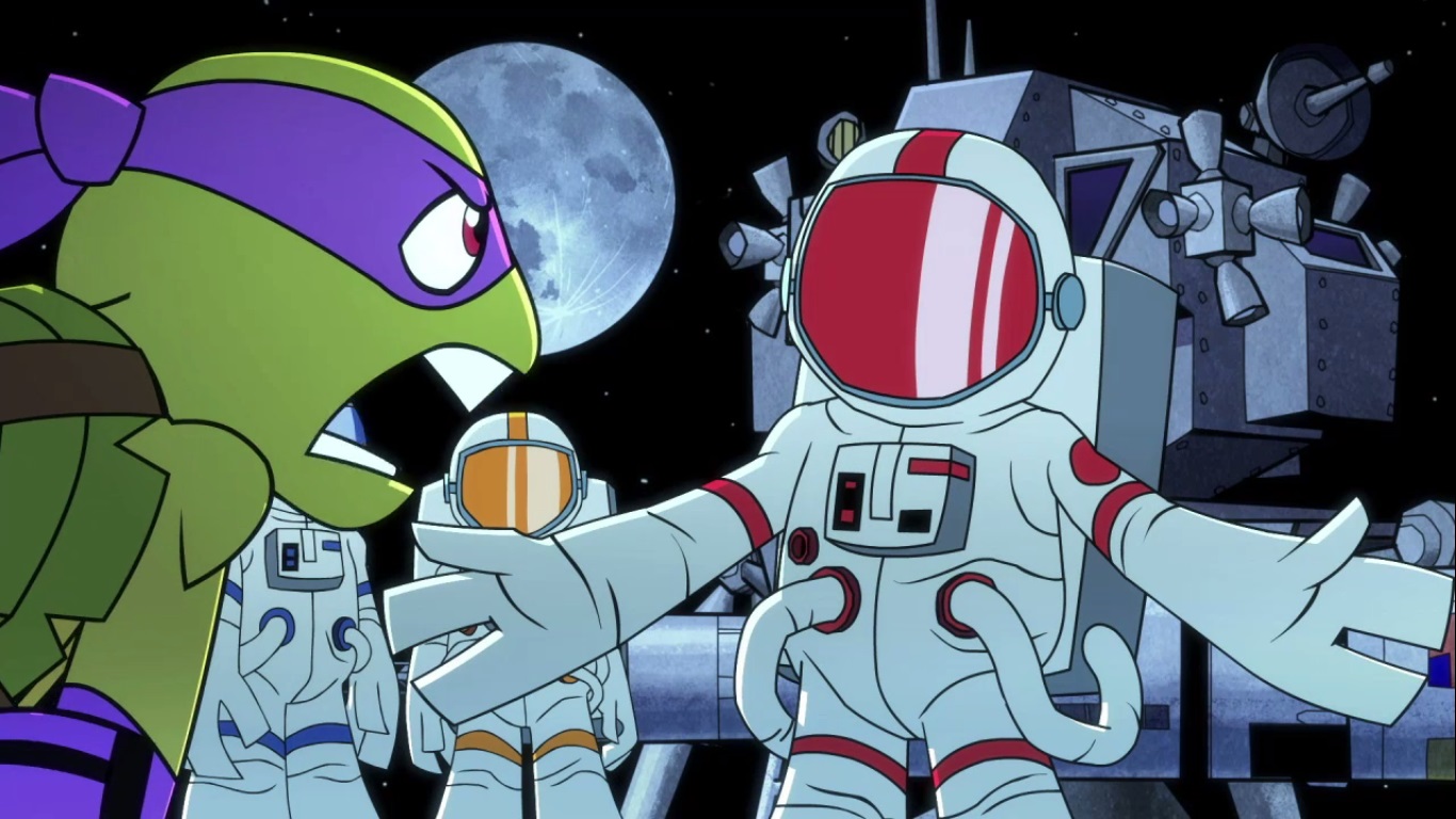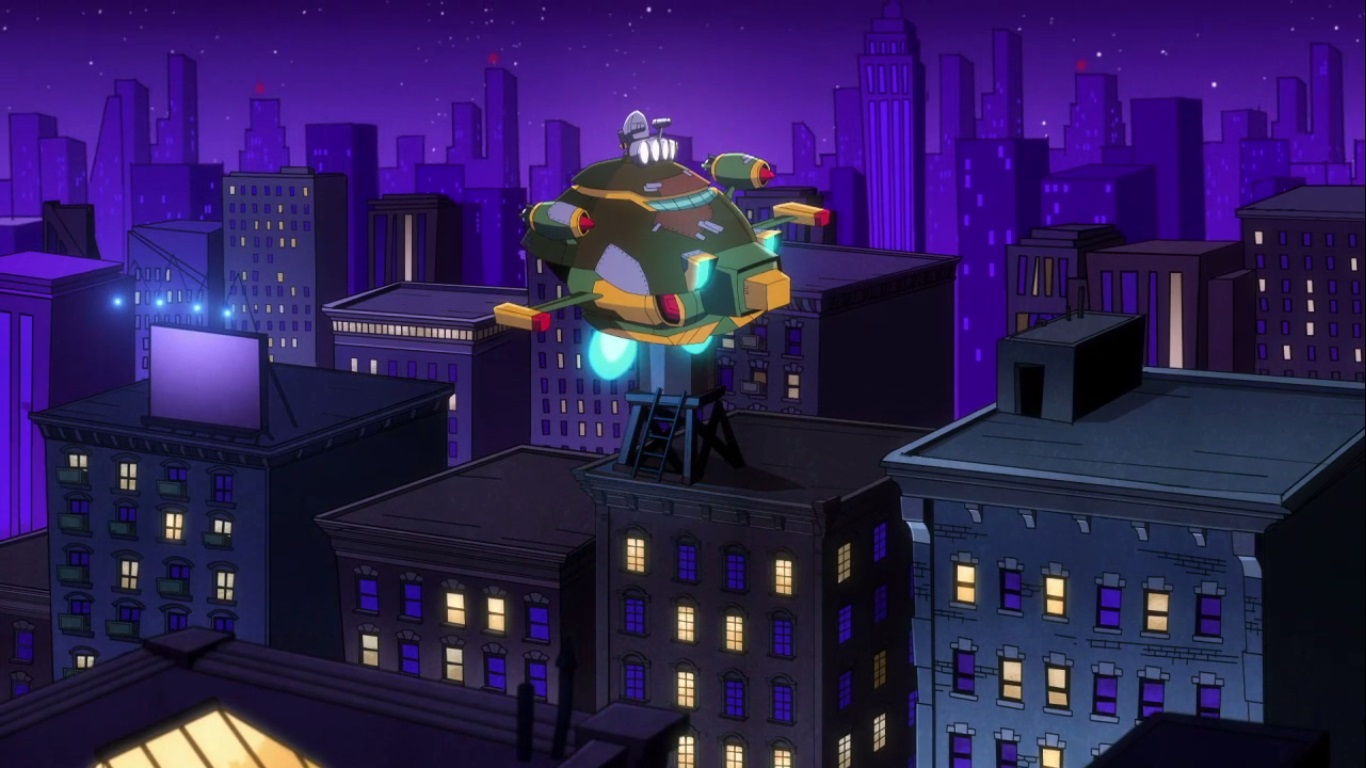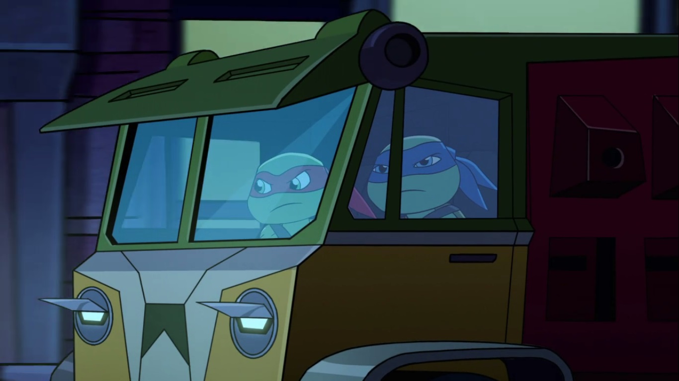 La tortue présenta sa création à ses frères. Caché sous une très grande bâche se trouvait le Shell Former, un véhicule à l’apparence d’une tortue, capable de rouler et de voler, et même de se transformer en Turtlebot. Mais Leonardo s’opposait à l’utilisation de la kronite pour faire fonctionner ce véhicule. Il voulait remettre le cristal au musée avant son ouverture au matin. Cela était très risqué, car les Foot pouvaient très bien revenir pour le voler. Il ne fallait pas qu’il tombe entre de mauvaises mains. Michelangelo insistait pour essayer ce nouveau bijou et il n’en fallait pas beaucoup plus pour que l’idée séduise Donatello. Ils voulurent faire le test en pleines rues de New York pendant la nuit. L’idée déplaisait fortement à Leonardo. La première phase fut le mode volant du robot. Contre toute attente, Bebop et Rocksteady se trouvaient au sommet des immeubles et sautèrent sur le vaisseau pour l’aborder.
