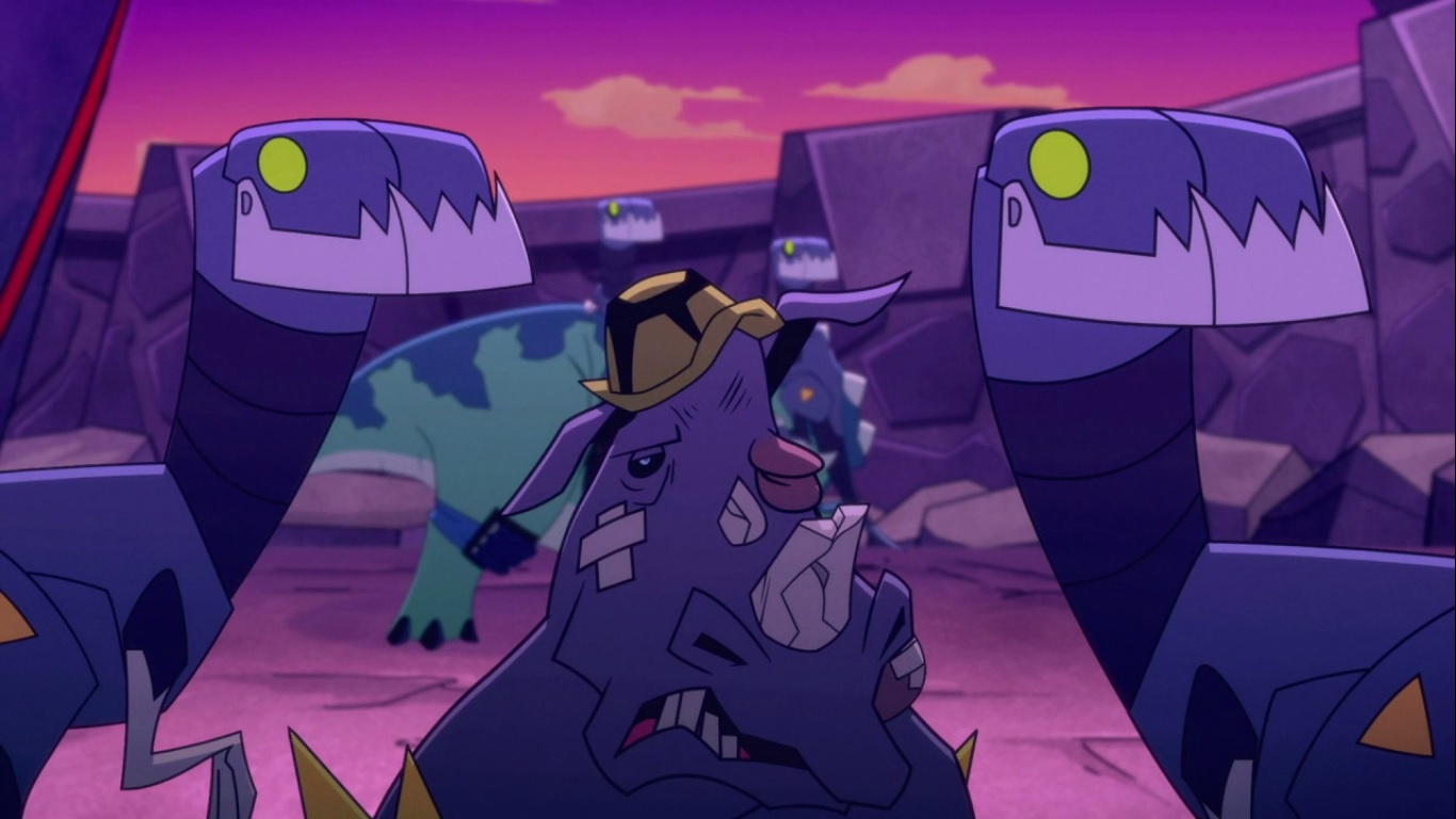 Approchant de la base Triceraton, ils furent repérés par le système de surveillance de Zera. Elle ordonna le lancement de leur sentinelle, un robot Spinosaure. Approchant de la base les dinosaures et leurs maitres s’arrêtèrent face à un robot gigantesque.