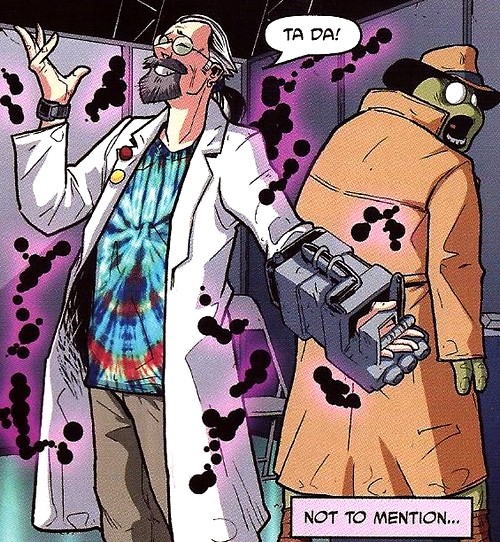 Le scientifique grincheux et sa compagne revinrent sur Terre lorsque le roi Zenter et ses armées intervinrent pour porter un coup décisif à la guerre du Rat King (The Armageddon Game #7). Ils y resteraient quelques temps, accompagnés de Honeycutt, pour aider la planète à améliorer ses systèmes défensifs (The Armageddon Game #8).