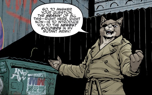 - L’armement de Herman lui vient d’Old Hob. Le chat semble assez satisfait de son travail (TMNT (Vol. 5) #38).