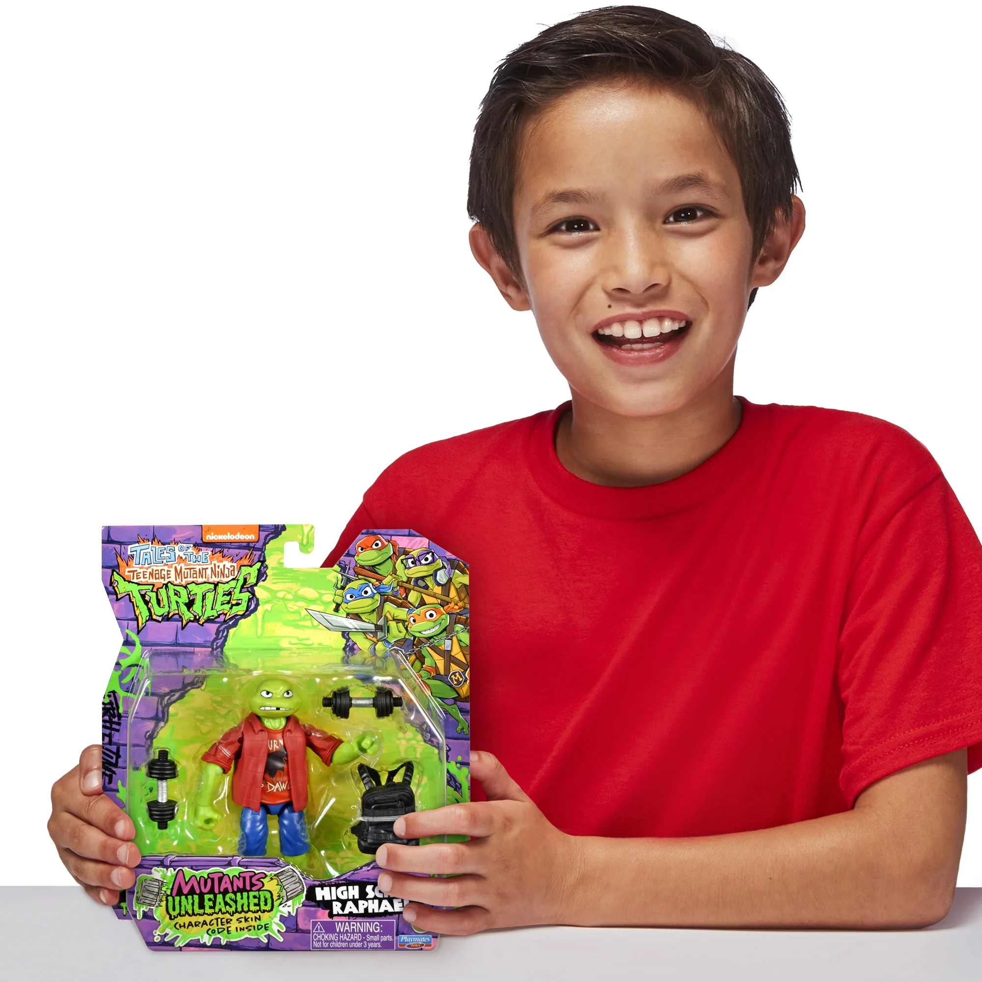 Parallèlement à la sortie des figurines Mix & match en août 2024, Playmates Toys a également proposé quatre figurines de base inspirées du jeu Mutant unleashed. Parmi elles, Raphael en habit d’écolier. Dans le blister se trouvait un code pour obtenir le skin du personnage dans le jeu Mutants Unleashed.