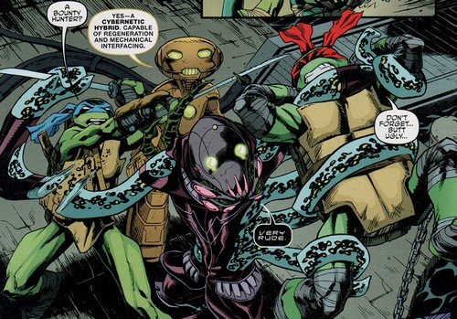 Après la défaite de Krang, le Fugitoid resta dans le Technodrome, où il continua d’aider les tortues. Il fut l’un des principaux acteurs du sauvetage de Donatello, qui eut la carapace fracassée par Rocksteady (TMNT #44). Il obtint de Leatherhead du mutagène qui l’aida à stabiliser la tortue et la guérir en échange de lui offrir un nouvel habitat à New York (TMNT #49). Après cet épisode, il fit appel aux tortues sur Burnow Island afin qu’elles viennent l’aider à sortir les utroms après plusieurs siècles de leur stase. Mais pendant le processus, son corps robotique fut grièvement endommagé par Leatherhead lui-même (TMNT #56). Il ne put hélas prévenir les tortues que trop tard, lorsque Donatello tentait de réanimer sa tête, en cours de régénération (TMNT #58).