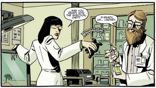 chet-allen-comic-idw-tortues-ninja-turtles-tmntIl devint un nouvel homme qu’il perfectionna rapidement pour devenir le professeur Chet Allen. Il ne tarda pas à travailler pour le professeur Baxter Stockman, qui était lui-même à la botte de Krang. Il alla trouver également le Foot Clan qui partirent dérober le mutagène au laboratoire de StockGen (TMNT #1). Il réalisa les expériences sur les tortues et Splinter, le Specimen 6 et aida fréquemment April O’Neil, qui avait pleinement confiance en lui (TMNT Micro-Series #8 : Fugitoid).