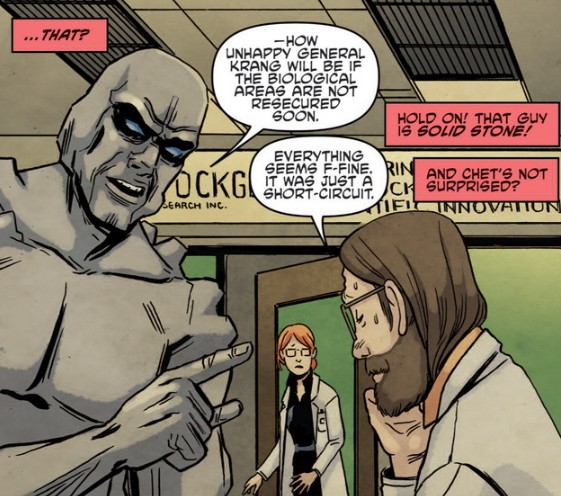Caractéristiques : Scientifique neutrino survivant du massacre de Krang et dont l’esprit a été transféré dans un robot. Réfugié politique sur Terre caché sous l’identité de Chet Allen, travaillant au laboratoire de StockGen.