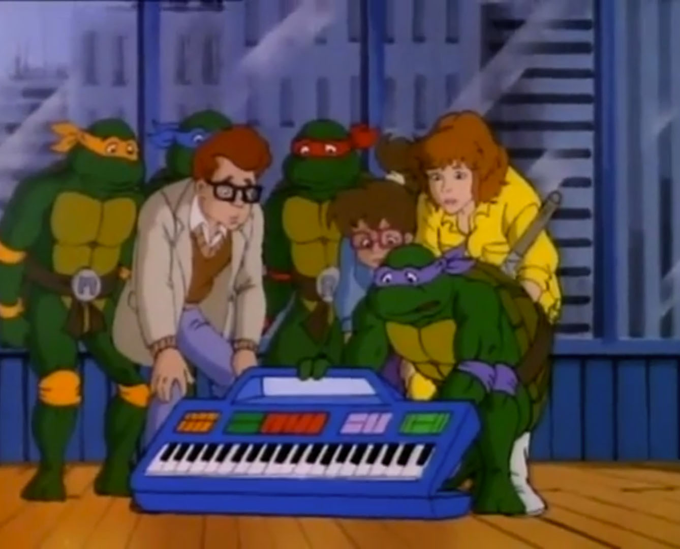 Howie Hardy était un compositeur de musique qui appréciait notamment les instruments de type piano. Il était le petit ami d’Irma. Ensemble, ils trouvèrent un jour un clavier de synthétiseur chez un brocanteur. Le musicien ignorait alors qu’il était d’origine extraterrestre. Celui-ci avait été jeté par Bebop et Rocksteady, après que Shredder ait récupéré les pièces les plus intéressantes d’un vaisseau perdu en Dimension X. La musique jouée par le clavier perturbait le dématérialisateur, une autre pièce de ce même vaisseau que Krang utilisait pour détruire tout un quartier de New York si le maire n’offrait pas l’énergie nécessaire pour ramener le Technodrome sur Terre. Donatello découvrant l’appareil et ses facultés, essaya de s’en servir pour retrouver la bombe de Krang et la désamorcer, tandis que Shredder et ses sbires essayaient de mettre la main sur le synthétiseur pour le détruire. Finalement, les tortues eurent raison du dématérialiseur et Donatello répara le synthétiseur (Attention les oreilles, S4 E10).