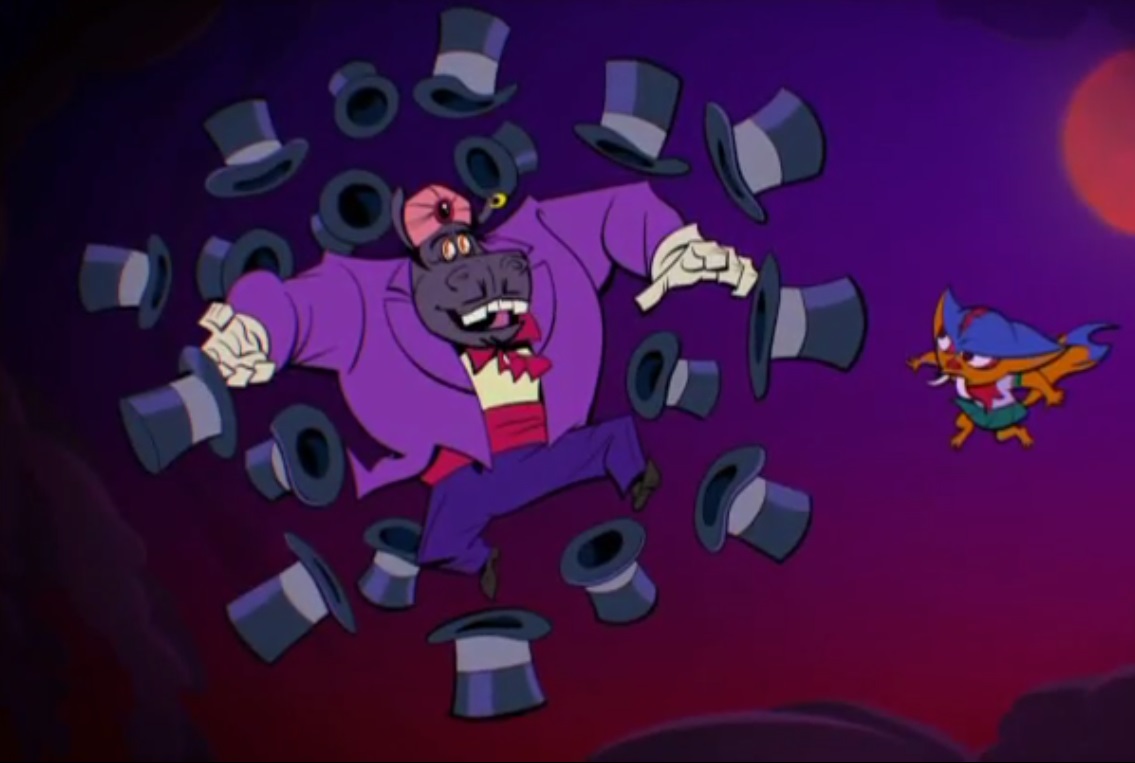Alors que les documents personnels du magicien Houdini étaient présentés au cours d’une conférence, Hypno-Potamus chercha à s’en emparer pour devenir plus puissant. Les tortues réussirent à déjouer son plan, mais une mystérieuse ombre captura le mutant (The clothes don’t make the turtle, S2 E 19).