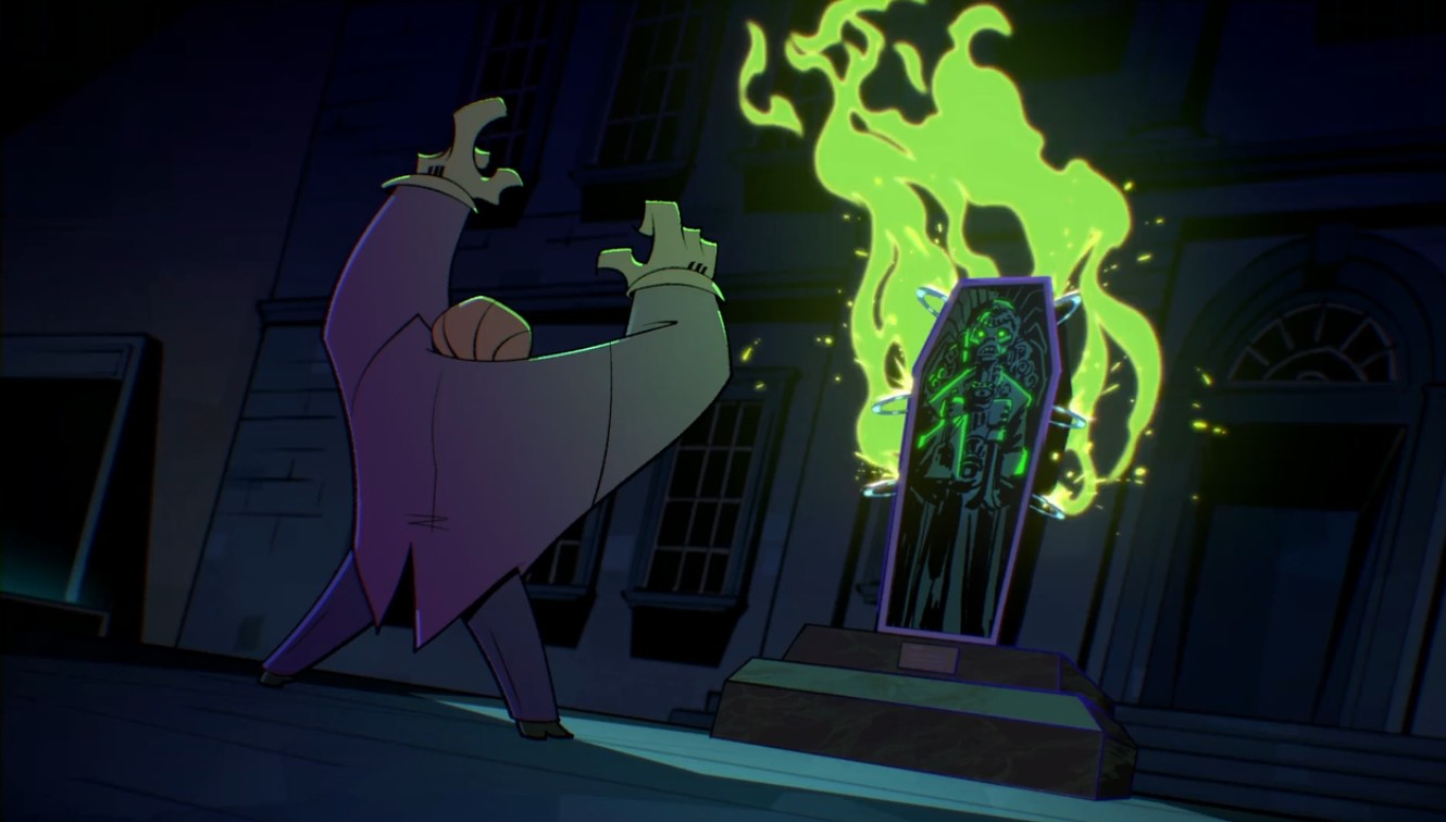 Le magicien désirait ressusciter son ancien partenaire de spectacles et animal de compagnie, Douglas, disparu lors de sa mutation. Il espérait, avec les pouvoirs qui lui avaient été conférés par une sorcière, le ramener à la vie. Il se dirigea pour cela vers un musée de New York pour y dérober une momie. Il fut arrêté à temps par les tortues (Quatre-en-un, S1 E17).
