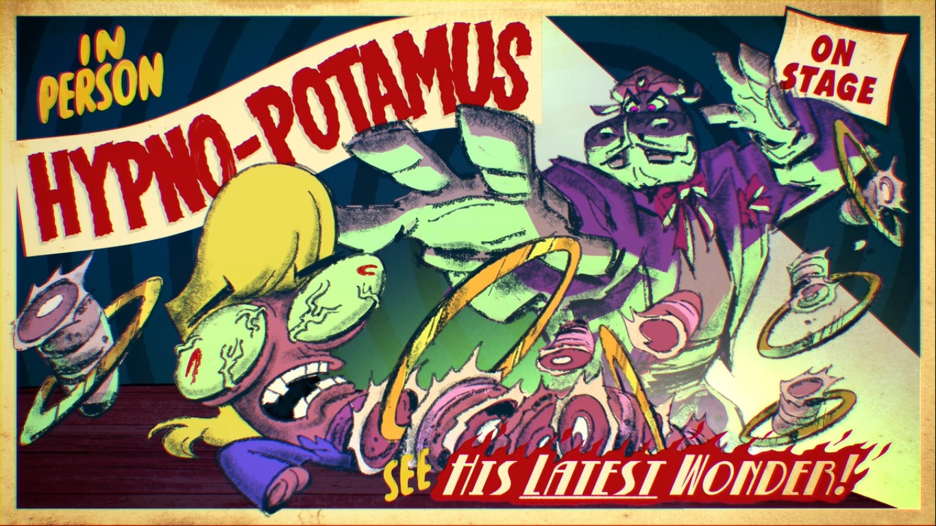 Il semblerait que les pouvoirs d’Hypno-Potamus proviennent de la rencontre du magicien avec une sorcière (Quatre-en-un, S1 E17). Hélas cet aspect du personnage n’a jamais pu être réellement développé.