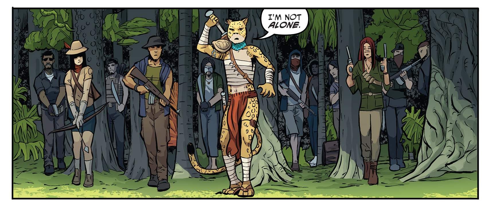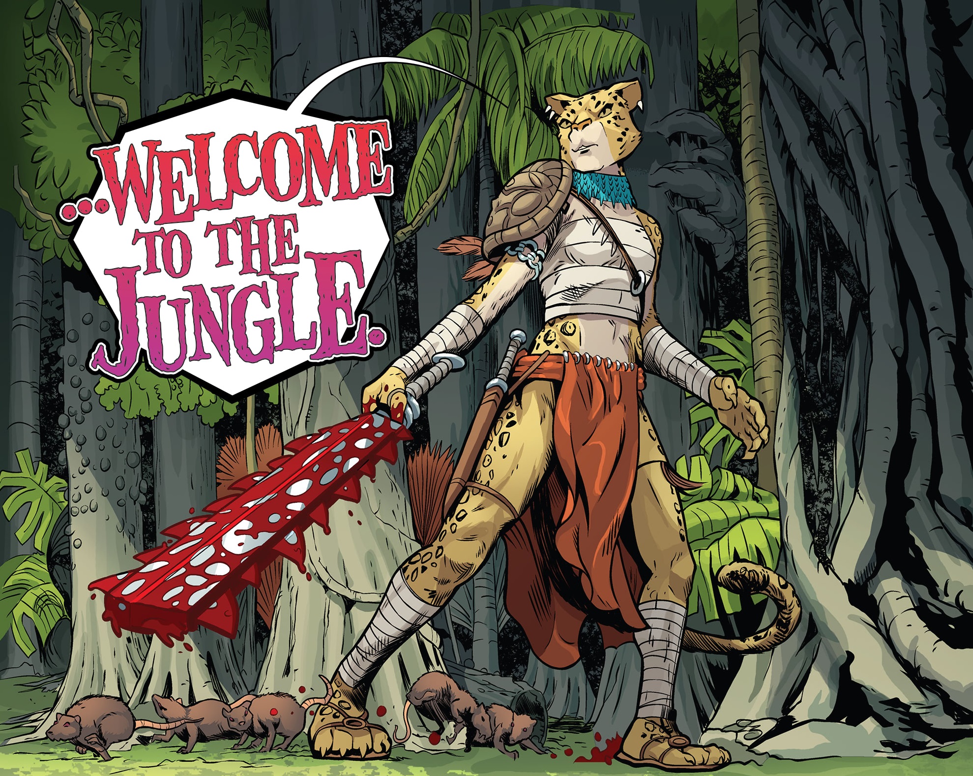L’animal avait été créé par Ryan Brown pour les TMNT Adventures d’Archie Comics en 1990. Le statut du personnage n’a finalement guère changé. Dans l’Annual 2021, Jagwar est présentée comme une forte défenseuse de la forêt, luttant contre les divers trafiquants avec véhémence, ce qui rappelle beaucoup le Jagwar de TMNT Adventures.