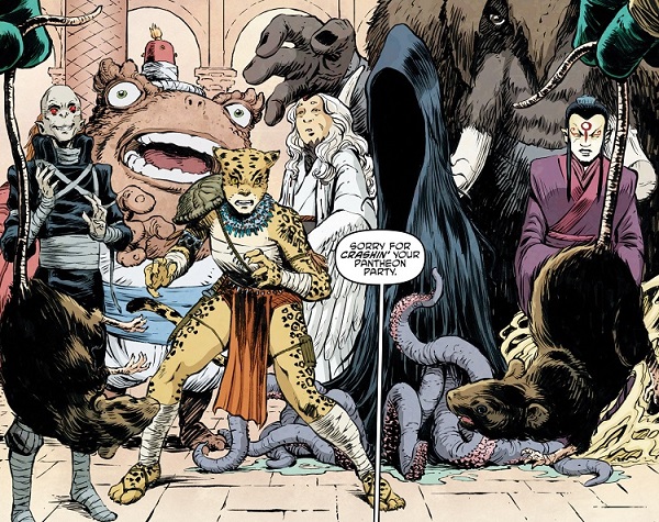 Finalement, face à la fourberie du Rat King, ses frères et sœurs décidèrent de s’interposer. Luttant contre la créature vile, Gothano et Manmoth et Jagwar périrent les premiers. La féline fut la première à se faire tuer, emportée par son tempérament irréfléchi. Bondissant sur son frère, sa lame en main, celui-ci s’empara d’une racine qu’il ficha dans son ventre. Kitsune, dans un ultime espoir, s’empara de la Turnstone de Cherubae et l’utilisa pour invoquer leur frère disparu Chi-You. Celui-ci, libéré de sa prison de proton, fit exploser le lieu, emportant tous les membres du Pantheon (The Armageddon Game #8).