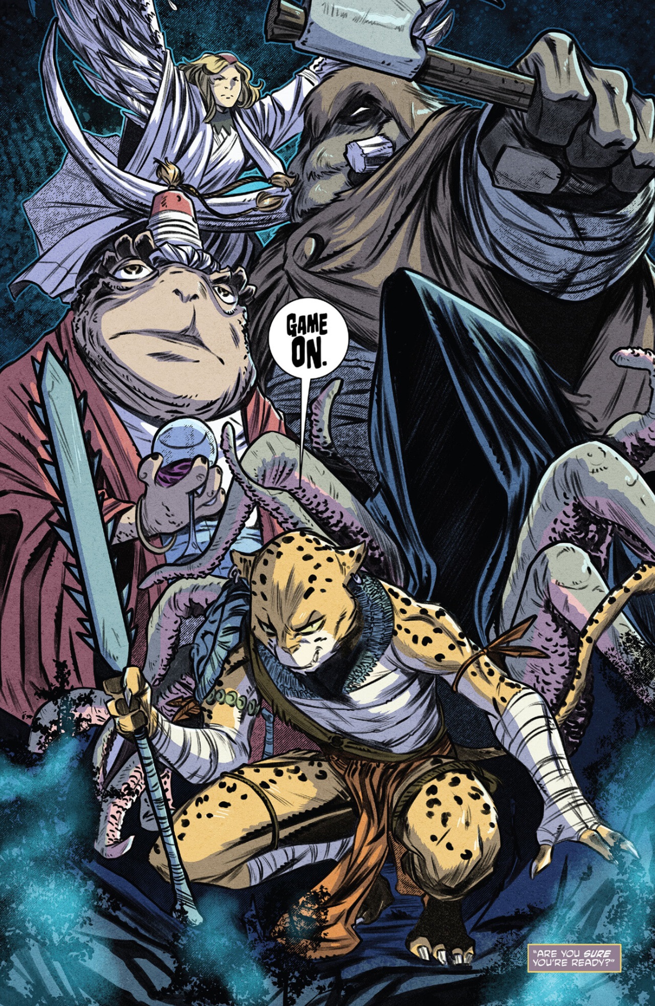 - Dans le TMNT (Vol. 5) #71, Kitsune qualifie Jagwar de « crétine à l’esprit étriqué […] dont les capacités mentales ne vont pas plus loin que le bout de ton épée ». Elle estime également qu’il s’agit du membre le moins influent du Pantheon.