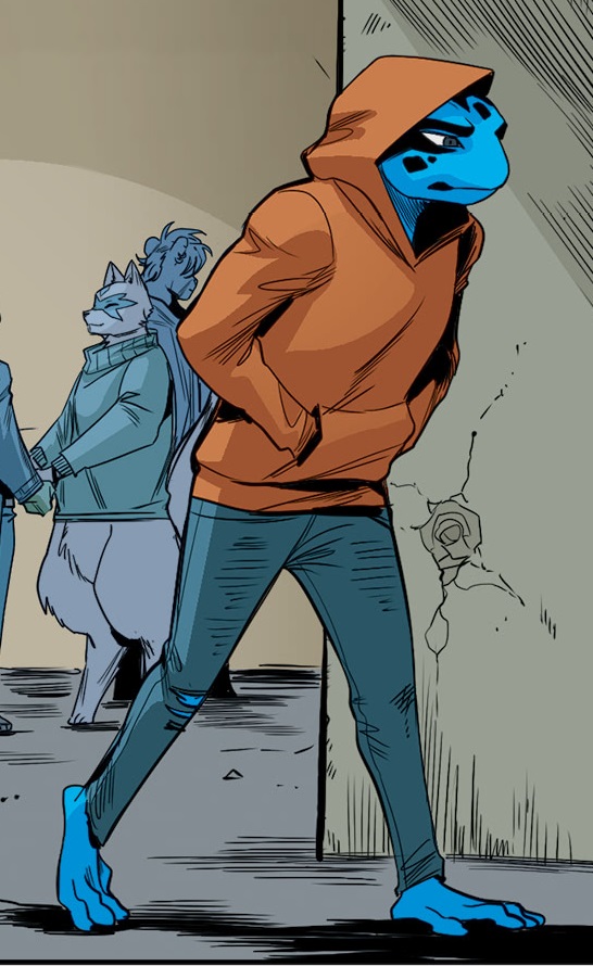 Jay était un adolescent qui avait été changé en dendrobate avec la bombe à mutagène d’Old Hob. Sa famille et son copain l’avaient laissés tomber à la suite de sa transformation. Prisonnier de sa nouvelle vie, il ne pouvait même plus toucher d’autres individus, sous peine de les empoisonner à cause de la substance que sa peau secrétait.
