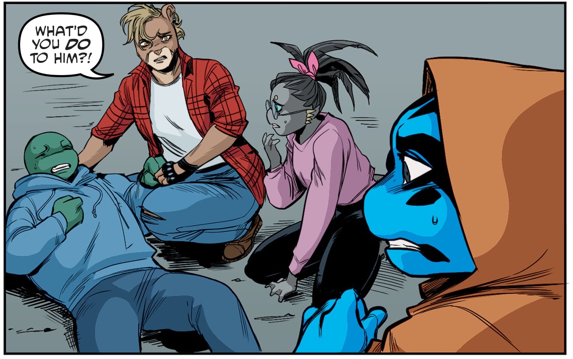 Perdu, il avait voulu participer au groupe de soutien organisé par le Splinter Clan. Mais très vite les esprits s’échauffèrent lorsque Mona Lisa et lui rejetaient l’origine de leurs malheurs sur Old Hob. Des Mutanimals étaient présents et reconnaissaient que leur vie avait été améliorée depuis leur transformation. Personne ne s’écoutait. Lorsque les tortues arrivèrent pour calmer les tensions, Jay empoisonna Michelangelo avant de prendre la fuite, lui reprochant de ne pas pouvoir le comprendre et de ne rien faire de concret pour changer les choses (TMNT (Vol. 5) #112).