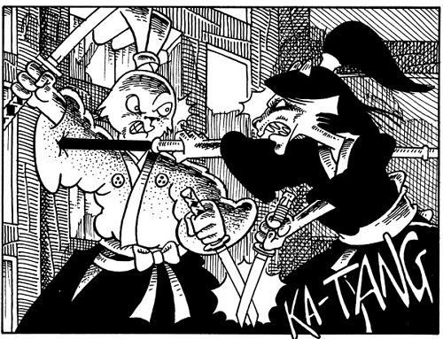Jei est un ennemi récurrent de l’univers d’Usagi Yojimbo, certains le considèrent même comme le plus grand ennemi d’Usagi. Immortel, il revient toujours à la vie et prend même possession d’autres corps.