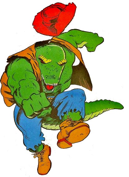 Caractéristiques : Humain transformé en alligator par la sorcière Cherubae. Catcheur pendant un court moment sur l’Astéroïde Stump, il revint sur Terre pour la sauver et intégrant les Mighty Mutanimals.