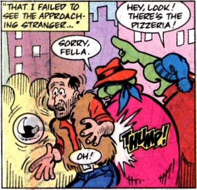 De nuit, il pénétra dans sa cabane et y déroba une sphère. Partant pour New York afin d’essayer de la vendre, il la perdit dans la rue. Essayant de la récupérer, tombée dans les égouts, il fut retrouvé par Mary Bones, venue chercher son bien. Il s’agissait de la turnstone, un joyau capable de changer la forme de ce qu’elle désirait.