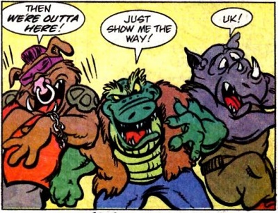 Après avoir vaincu leurs adversaires, les ninjas proposèrent au reptile de repartir avec eux sur Terre. L’alligator préférait rester sur l’astéroïde, où il recevait toute la reconnaissance dont il avait toujours rêvé et était perçu comme un héros. Sur Terre, il serait considéré comme un monstre et retrouverait sa vie misérable (TMNT A. #7).