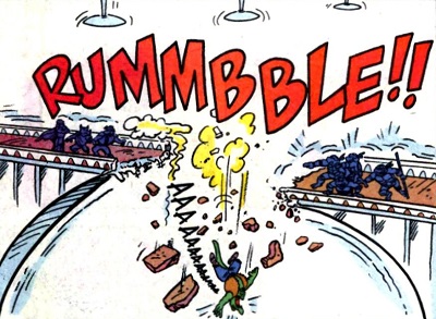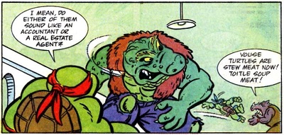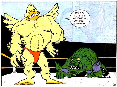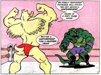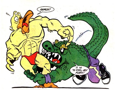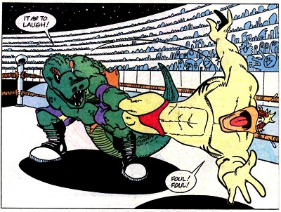 L’alligator avait survécu grâce à Cudley, la vache transdimensionnelle et fut amené sur l’astéroïde Stump afin de servir de catcheur. Peu après, il retrouva les tortues sur le ring, également transportées par Cudley.