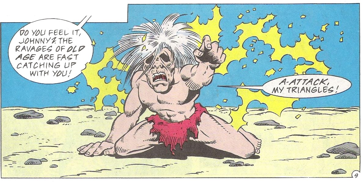 Un jour, April se lança à la poursuite du Golden Triangle et fut capturée par ses hommes (April O’Neil #1). Le gang du Dog Star s’attaqua au même moment à leurs rivaux, découvrant la cachette de Yen. Chien Khan ôta les pouvoirs de Johnny Yen, lui rendant sa vraie apparence ; celle d’un vieil homme inoffensif. Ce dernier, terriblement affaibli, essaya de regagner ses appartements et boire dans un calice lui conférant toute sa puissance. Mais il fut jeté dans un puits magique et disparut. (April O’Neil #3).