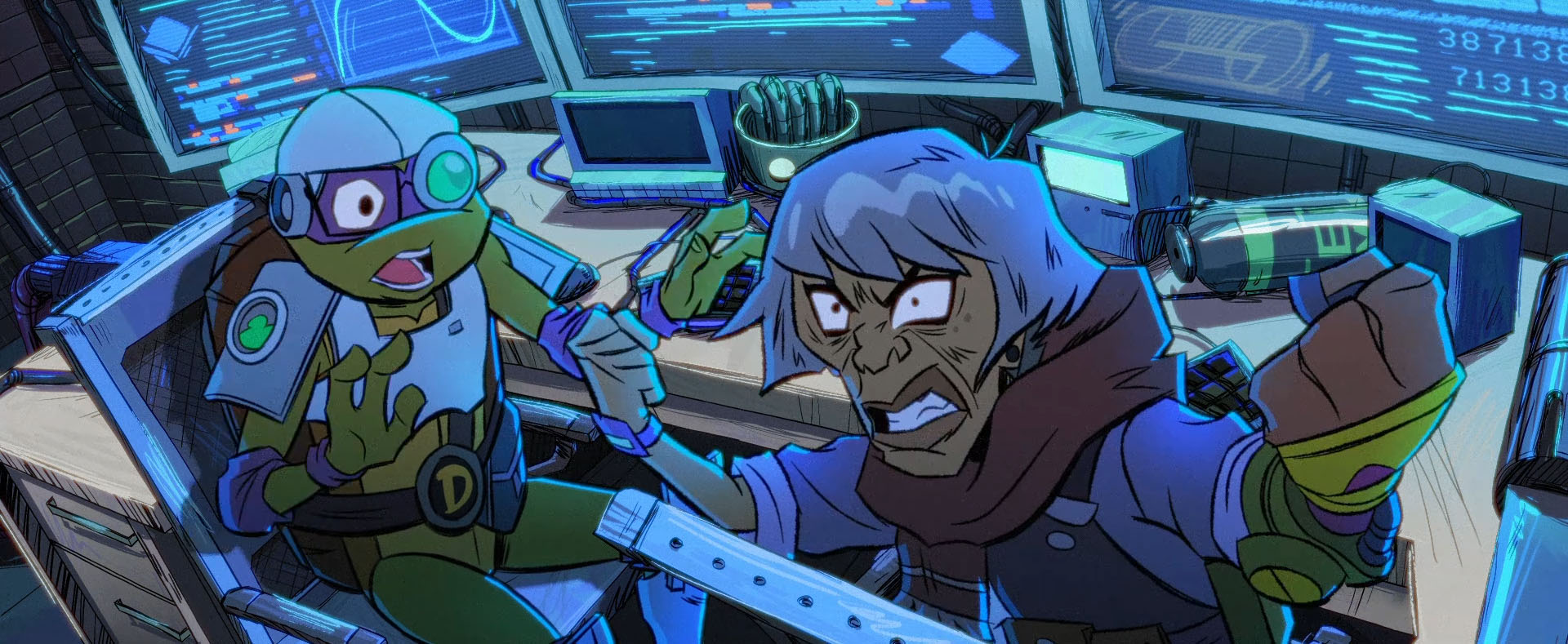 Après avoir acquis de nouveaux locaux, Bishop put se consacrer totalement à la robotique. Rod, toujours peu intéressé, tenait la cuisine du complexe quand il ne jouait pas avec ses figurines. La femme avait fait la promesse à sa sœur qu’elle parviendrait à faire un monde meilleur. Six mois après les débuts de ses nouveaux travaux, elle parvint à terminer son prototype, le Mechazoid Alpha. Au même moment, le plafond de son laboratoire s’effondra. SuperFly, qui attaquait Manhattan, le traversait au cours de son attaque (Film 2023). Alpha poussa Bishop pour ne pas qu’elle se fasse écraser. Le robot fut détruit. Bishop, qui avait reçu une étagère sur la tête, repris conscience et vit dans les décombre les tortues s’apprêter à combattre le monstre géant. Dès ce jour, naquit un sentiment de haine profond contre les mutants.