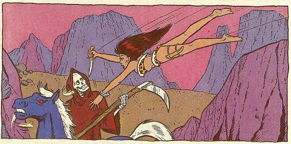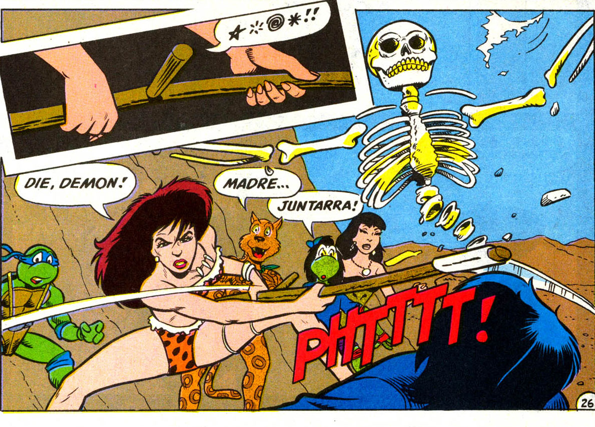 Elle reprit par la suite son parcours en direction du nord où elle apprit beaucoup du dragon Glyph. Mais se dirigeant vers l’est pour finaliser son parcours, elle fut capturée par Death qui était à ses trousses depuis peu. Il la retrouva dans le désert (Mighty Mutanimals #1) et l’emmena dans son repaire en forme de crâne (Mighty Mutanimals #2). Recouvrant ses esprits, Juntarra parvint à s’enfuir de la pièce où elle était retenue, mais son chemin fut barré par M. Null (Mighty Mutanimals #3). Dans la lutte, elle subtilisa la faux du squelette et trancha le cigare de l’homme d’affaires, qui l’assomma d’un coup de poing (Mighty Mutanimals #4).