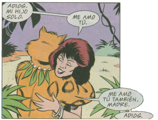 - Comme son fils Jagwar, Juntarra parle l’espagnol alors qu’elle vit au Brésil. Cette erreur est pointée du doigt par Kid Terra et « justifiée » par la jeune femme par le fait que ses parents étaient des missionnaires espagnols (Mighty Mutanimals #5).