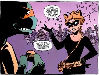On ne revit Kara Lewis que lors de l’arrestation de Hun (TMNT (Vol. 5) #47). Old Hob et Herman attaquèrent le fourgon blindé, emmenant le prisonnier avec eux. Lewis eut beau tirer sur les malfrats, ils réussirent à s’enfuir. Si le détective pensait qu’au cours de ses deux années d’infiltrations, elle avait tout vu, elle ne s’attendait pas à cela (TMNT (Vol. 5) #48).