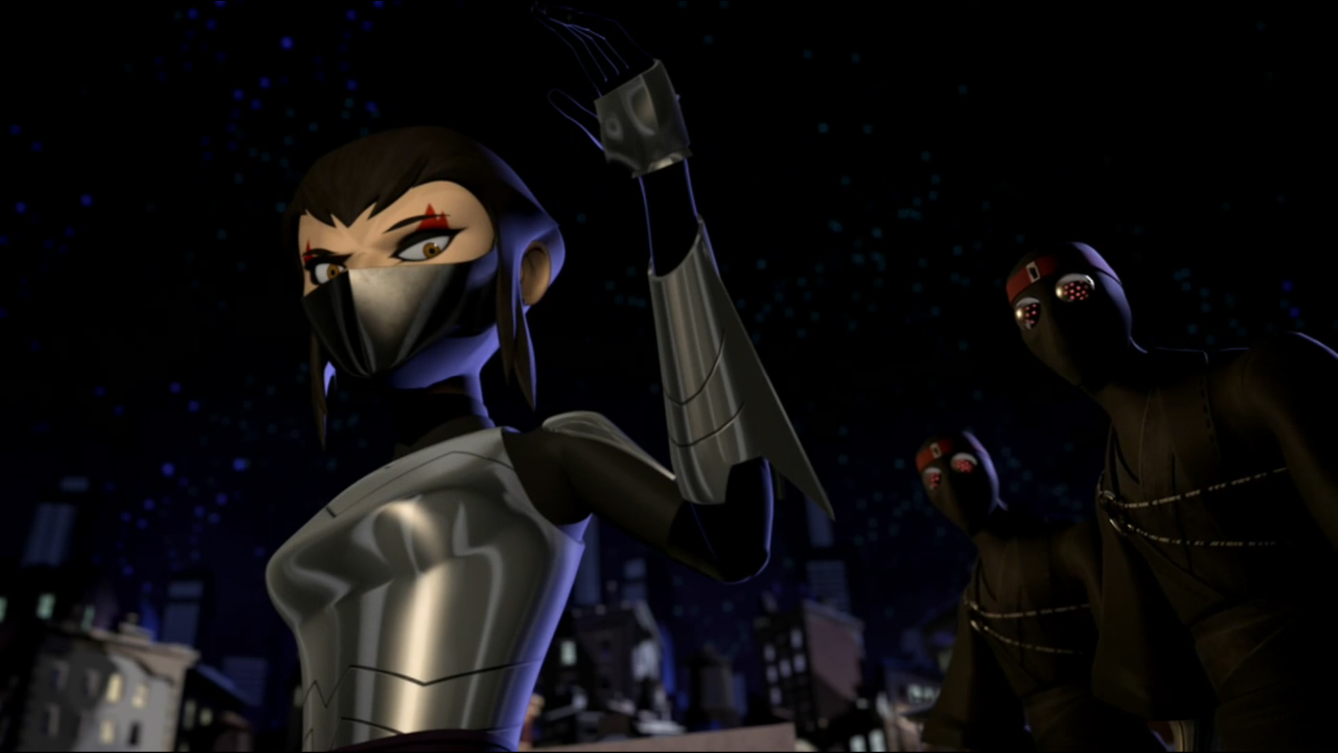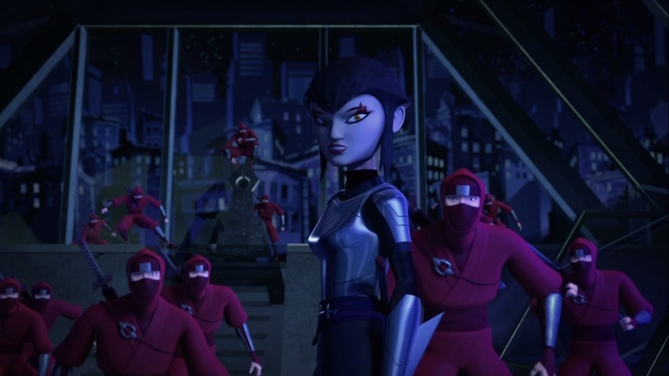 Parallèlement, Karai s’intéressa aux kraangs, apprenant leur existence en espionnant un combat des tortues dans les rues. Hélas pour elle, la jeune femme essuya l’indifférence de son père, obstiné par sa quête de vengeance.