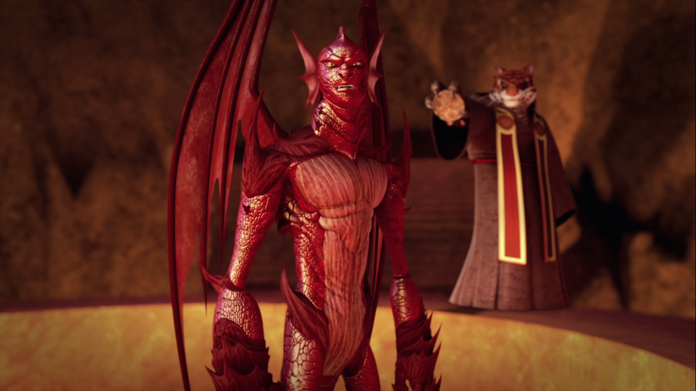 Après avoir redressé le Foot Clan, Tiger Claw se constitua une nouvelle armée de Foot cultists et leur demanda de trouver le Rouleau du Démodragon dans le but d’invoquer Kavaxas. Le tigre mutant désirait user des pouvoirs magiques de la créature pour ramener Shredder à la vie. Leonardo et Michelangelo cherchèrent à les arrêter en vain. Après avoir retrouvé leurs traces, les tortues, April et Casey furent capturés et assistèrent à la cérémonie menée par Tiger Claw pour invoquer Kavaxas. Le démodragon voulut dans un premier temps tuer son invocateur avant de se rendre compte qu’il avait en sa possession le Sceau des Anciens. Se pliant aux ordres du tigre, il devait éliminer les six compagnons, qui parvinrent miraculeusement à prendre la fuite. April découvrit à cette occasion que ses pouvoirs n’affectaient pas Kavaxas, étant originaire d’un autre monde (Le rouleau du démodragon, S5 E1).