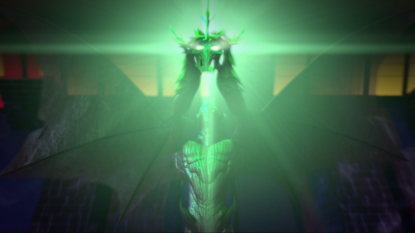 Libérant tout son pouvoir, le démon créa une énorme brèche liant le monde des morts à New York. Les esprits sortirent du sol pour hanter les rues de la ville. Donatello avait préparé des armes pour venir à bout du démodragon. Elles leur furent d’une grande aide contre ces fantômes. Leonardo, Michelangelo, Karai et Leatherhead partirent pour le repaire souterrain du Foot Clan afin d’arrêter Kavaxas. Au cours du combat, Michelangelo parvint à recoller le sceau brisé avec des chewing-gums et contrôler Kavaxas qui n’eut d’autres choix que de lui obéir. Il referma le portail des enfers avant de se jeter dedans, aidé par Shredder (La fin des temps, S5 E4).