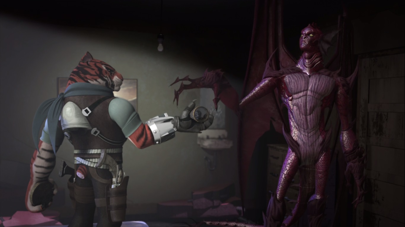 Pour tester les pouvoirs de Kavaxas, Tiger Claw lui ordonna de ramener Rahzar à la vie. Le loup mutant avait été noyé au cours de son combat contre Leatherhead (Requiem, S4 E25). Convainquant son assemblée, le tigre voulut qu’il ressuscite par la suite Shredder. Le démodragon ne pouvait accomplir cet exploit sans le kuro kabuto du guerrier, qui renfermait son esprit, ainsi que son cœur, dérobé. Ainsi, le Foot Clan partit à la recherche du casque de Shredder, que Hattori Tatsu, ancien bras droit du leader du clan, avait en sa possession depuis peu.