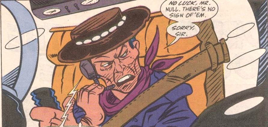 Kid Terra était un mercenaire portant un style vestimentaire de cowboy. Il s’était allié durant une grande partie de sa carrière à M. Null afin de l’aider à veiller sur ses affaires crapuleuses. Lorsque les tortues arrivèrent en Amazonie, il avait prévenu son supérieur de l’échec de ses braconniers (TMNT A. #14) et de l’exploitation de la mine en flanc de tepuy (TMNT A. #15).