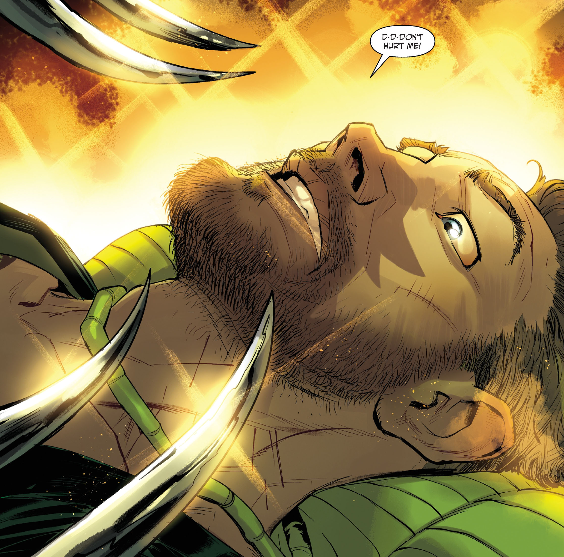 En réponse, Shredder le défigura, lui coupant le nez, sectionnant sa langue et déchirant ses lèvres. Dans le supplice, l’homme lui révéla des informations pour la suite de sa quête (Shredder #2).