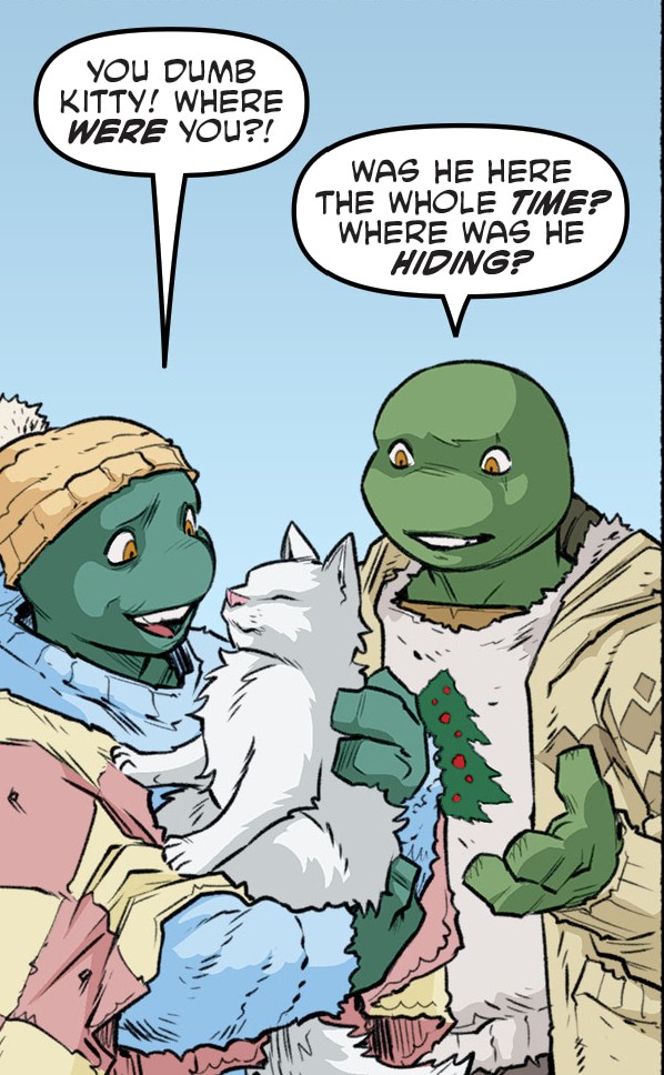 Klunk était un chaton que Michelangelo recueillit après le décès de Splinter. La tortue était enfermée dans le mutisme à cette époque et ne communiquait avec personne. Avoir ce compagnon à poil était une manière de se réconforter (TMNT (Vol. 5) #101).