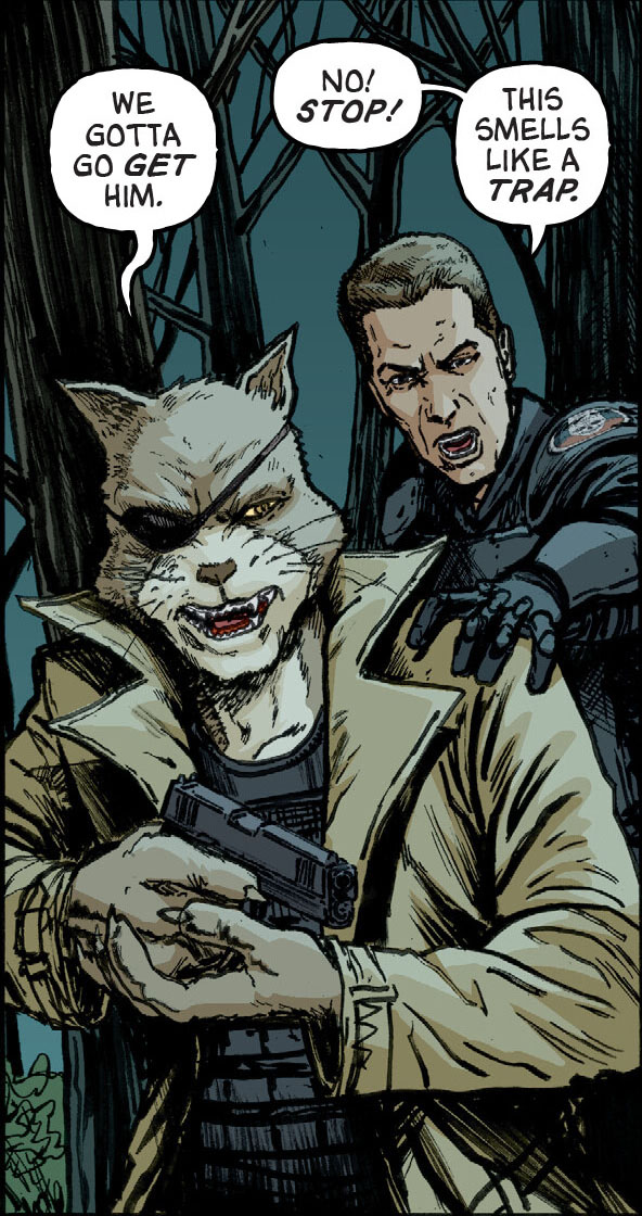 Il s’agissait de Lindsey Baker, transformée en araignée mutante et devenue incontrôlable. Le chat essaya de venir en aide à Herman, mais Knight lui signala la forte probabilité d’un piège. Ils intervinrent depuis deux zones opposées, forçant la scientifique à sortir de sa cachette. Knight manqua de se faire dévorer et se fit sauver par le chat.