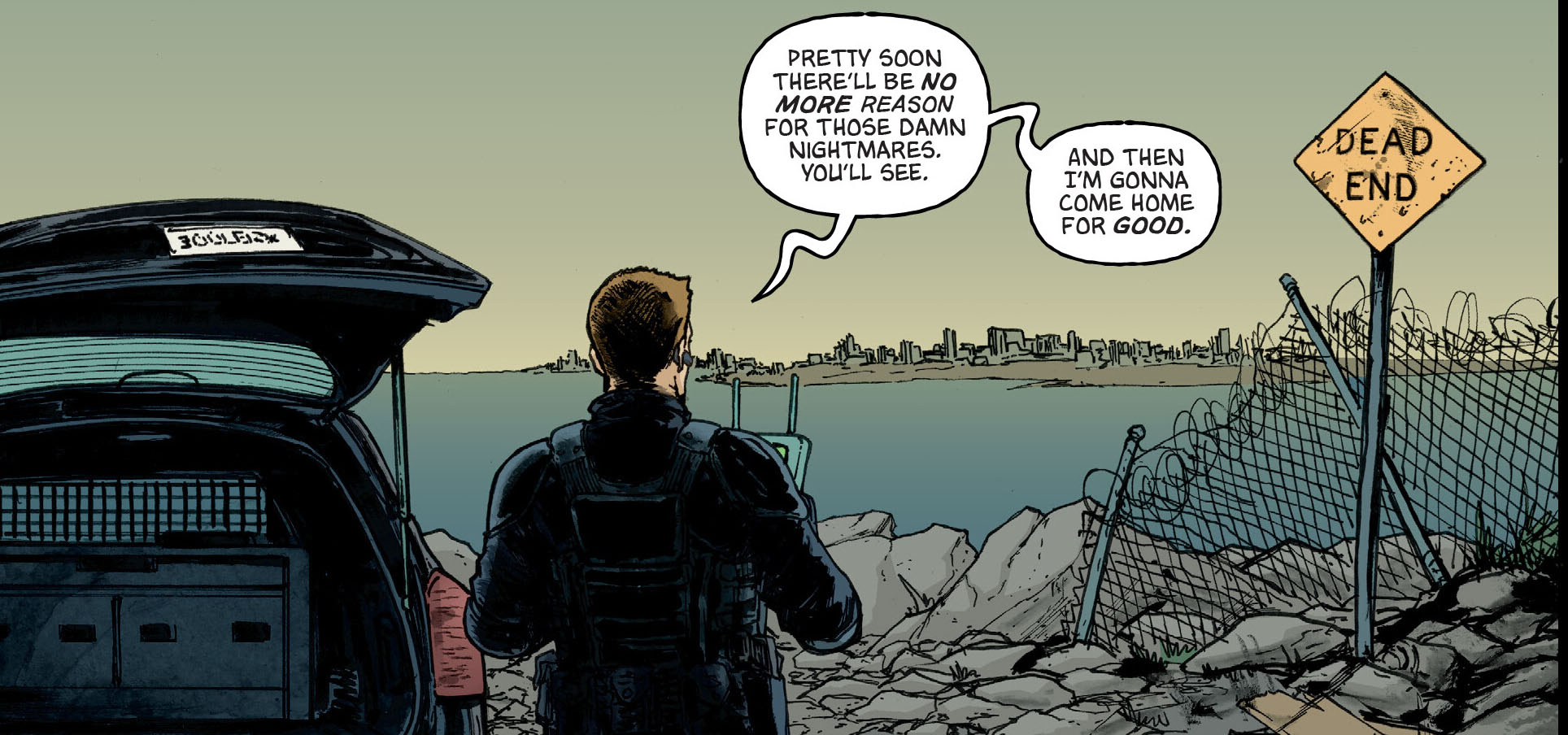 Finalement, Wesley Knight se retourna contre Bishop lorsqu’il vit qu’Old Hob avait pris en otage sa femme, Pamela. Constatant que le chef de l’organisation qui avait engagé ses services restait impassible, sans même réagir face à la capture de son propre père Wayne Bishop, Knight ordonna à ses hommes de s’en aller. Tout ce qu’Old Hob désirait était qu’on lui rende les siens, en échange de ses otages. Alex Winter, qui était resté dans le véhicule principal au cours de l’opération dans les ruines de StockGen, pointa son arme sur la tête de John Bishop, le contraignant à se rendre. Sortant du véhicule, il remit son pistolet à Man Ray avant de s’en aller avec les autres soldats de Dark Water (TMNT (Vol. 5) #70).