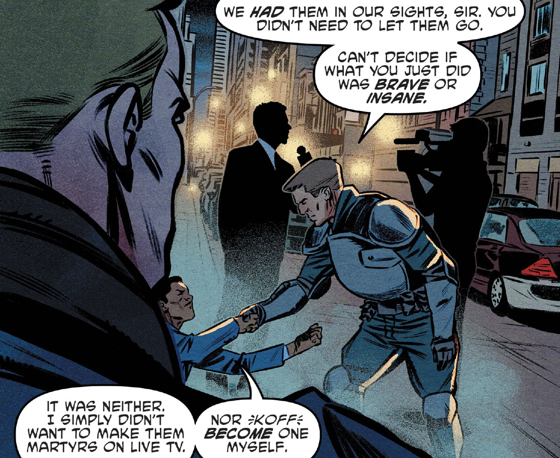 Le colonel Knight fit partie de l’opération de Bishop contre l’immeuble du T.C.R.I visant à tuer la mutante Zodi. Les tortues surveillaient alors leur amie April, qui proposait un marché au professeur Baxter Stockman en ce lieu (TMNT Universe #1). Les cinq mutants durent s’allier pour en réchapper vivants (The war to come).
