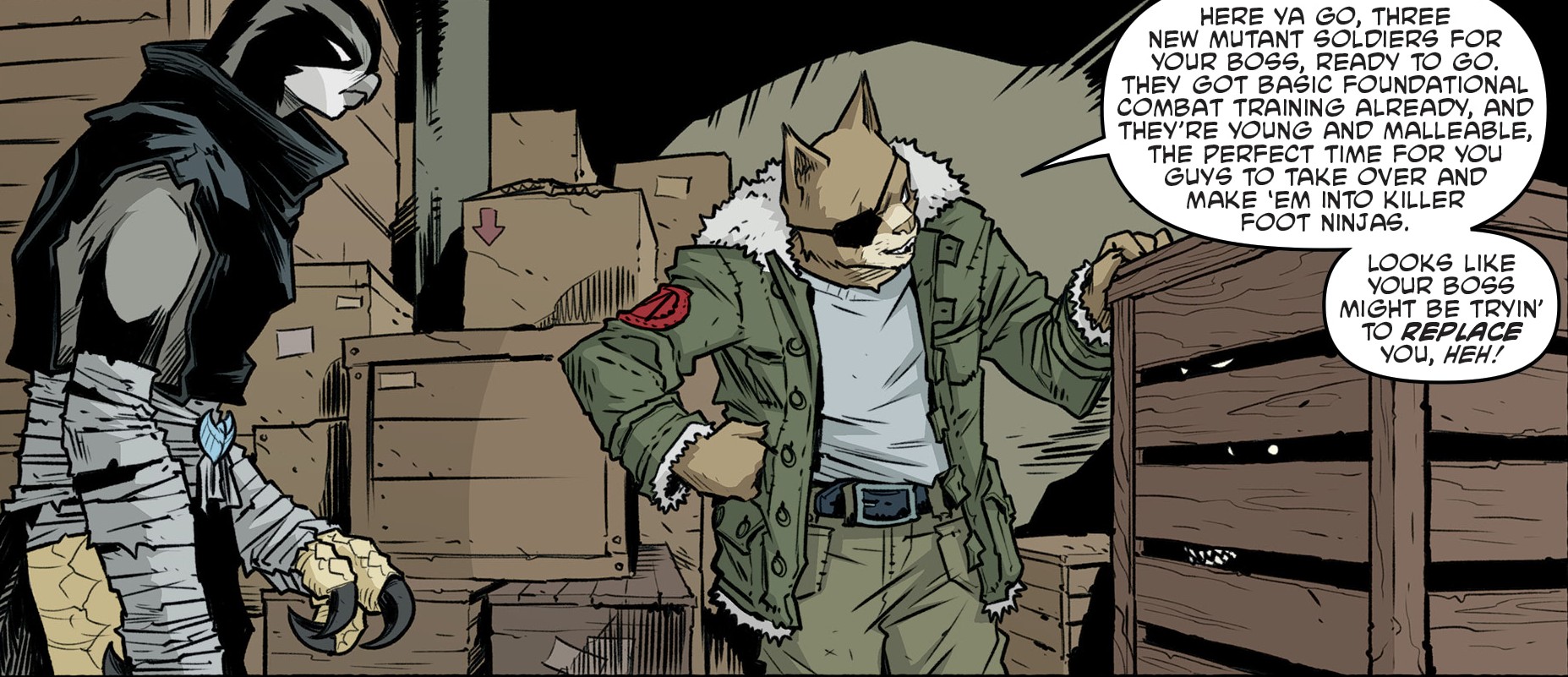 Koya joua un rôle important dans la chute de Splinter à la tête du Foot Clan, décimant une partie des ninjas Foot (TMNT #97). Après la déroute des tortues, ces dernières revinrent délivrer les orphelins, et durent de nouveau se mesurer à Bludgeon et Koya, qui gardaient les enfants (TMNT #99). Après l’invocation du Dragon sur les toits du quartier général du Foot Clan, le plafond s’effondra sur les mutants. Si Michelangelo était parvenu à soutenir la structure sur son dos pour sauver les enfants, Bludgeon et Koya furent assommés par les gravats (TMNT #100).