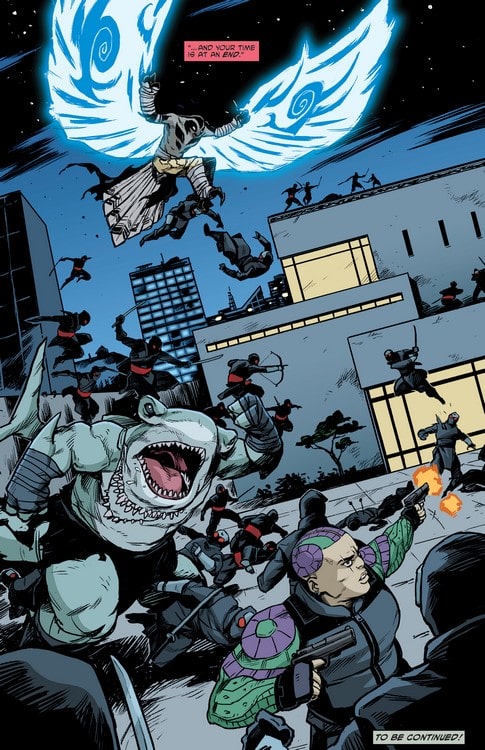 Koya ne supportait pas de ne pas pouvoir voler et perdit très vite ses moyens. Karai la raisonna, lui promettant de chercher une solution à son problème. Mais lui rappelant aussi qu’elle n’était pas la seule à avoir perdu quelque chose. Ils pénétrèrent tous les trois dans une grotte (TMNT Universe #13) et se retrouvèrent très vote confrontés à une armée de morts vivants. Karai avait entendu parler de ces gardes qui feraient tout pour les provoquer. Ils ne devaient pas lever la main sur eux. Ils ne leur feraient rien. Mais si Karai et Bludgeon restaient d’un calme redoutable, Koya s’emporta lorsque l’un d’eux prit la forme de Leonardo, celui qu’elle haïssait plus que tout, à l’origine de tous ses maux. Elle massacra la créature, obligeant Bludgeon à se surpasser pour les protéger sans mourir. Ils arrivèrent finalement dans la chambre où était entreposé le sabre tant convoité (TMNT Universe #14). Après que Karai s’en soit emparé et vaincu Ocho, cette dernière leur montra le chemin de la sortie. Avant de s’en aller, Koya déroba un talisman à l’effigie d’un oiseau gardé dans la chambre du trésor. Ils partirent tous les quatre, aidés de Natsu et Toshiro pour Tokyo afin de se venger d’Hayashi Toru.