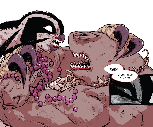 Koya continua d’être un précieux allié à Shredder. Lorsque celui-ci se rendit en mer pour traiter avec Krang, le faucon fit partie de son plan secondaire, au cas où les négociations venaient à tourner mal. Attaquant avec Bludgeon le bateau, elle sauva son maître alors qu’il faisait face à l’utrom. L’emportant dans les airs, ils allaient devoir se préparer à une guerre (TMNT (Vol. 5) #37).
