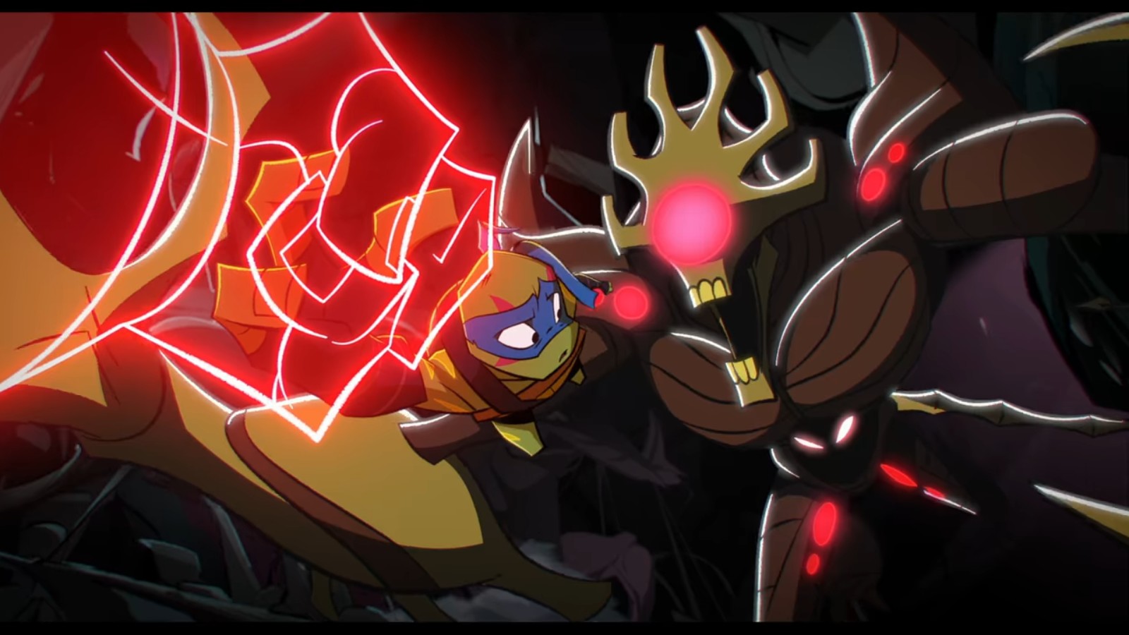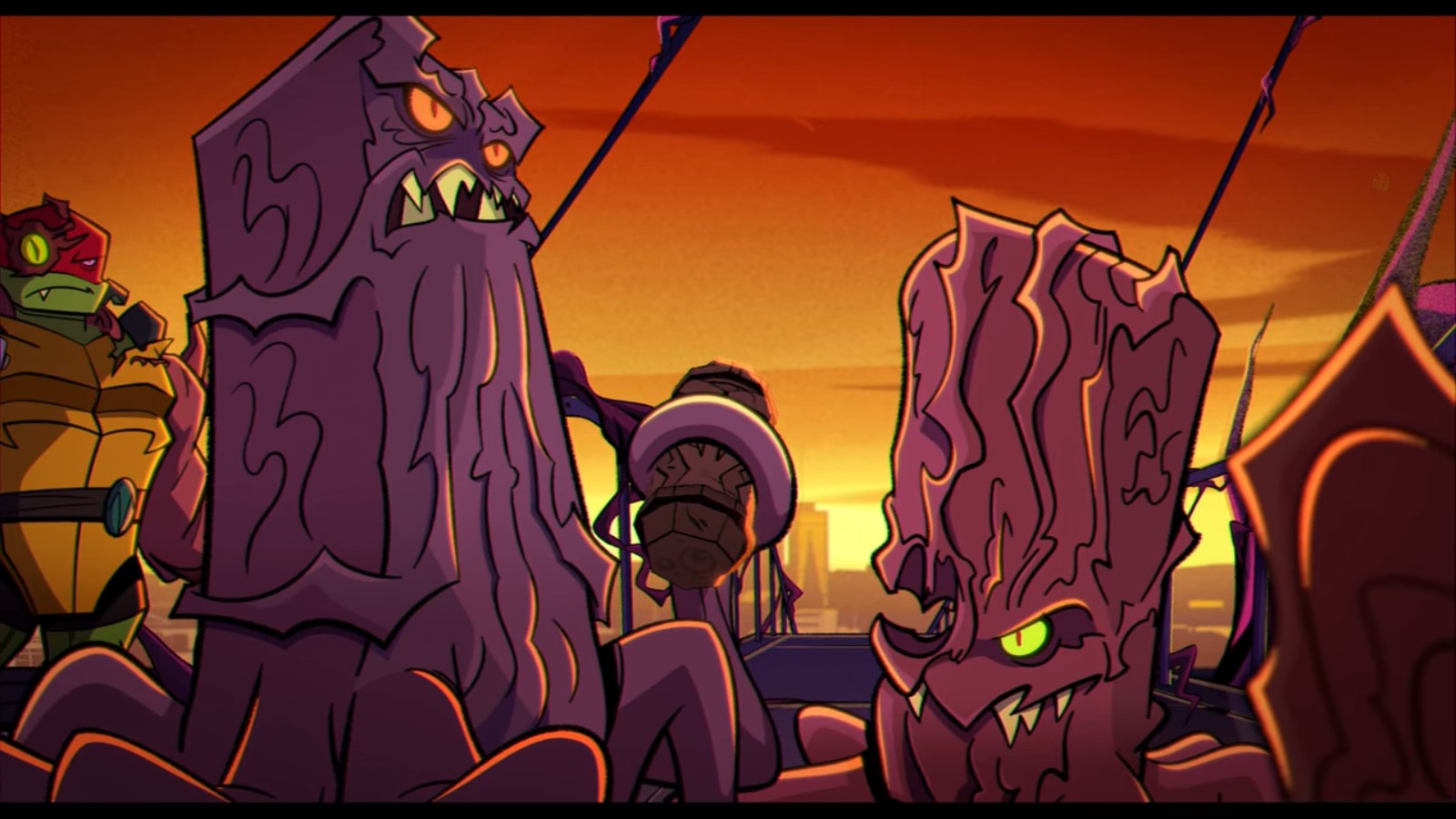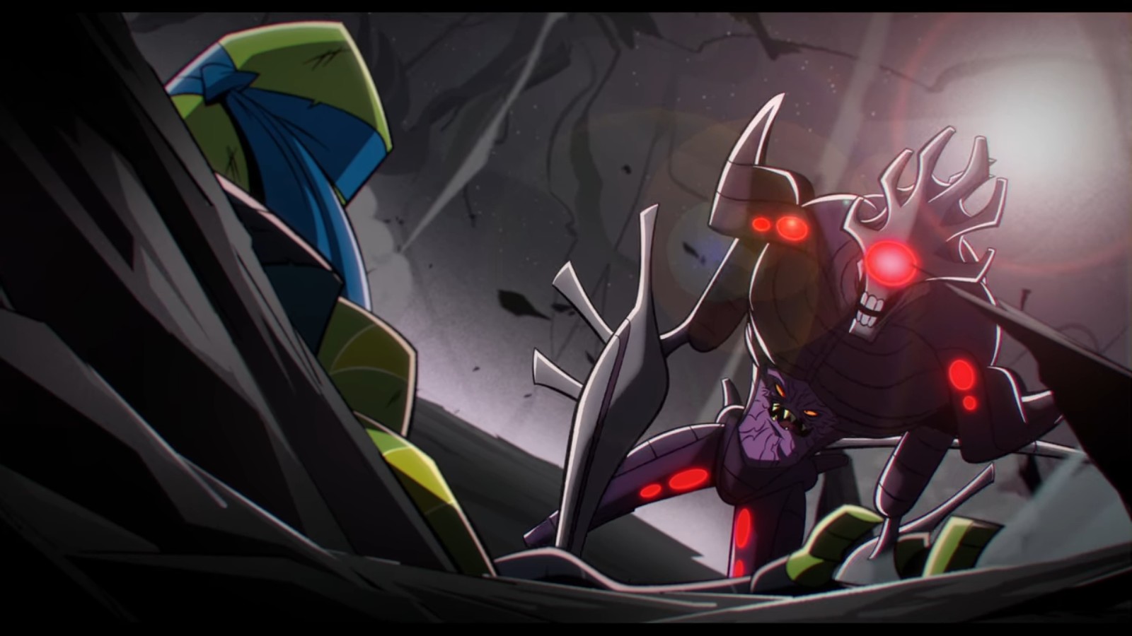 À sa sortie, il affronta les tortues, présentant immédiatement une grande menace. Il parvint à neutraliser les pouvoirs mystiques des quatre frères à l’aide d’un cri. Démunis, les ninjas bâtèrent en retraite, contre l’avis de Leonardo. Prenant conscience de l’importance de la clé du portail, le ninja fit tout pour le récupérer. Raphael lui vint en aide et fut capturé.