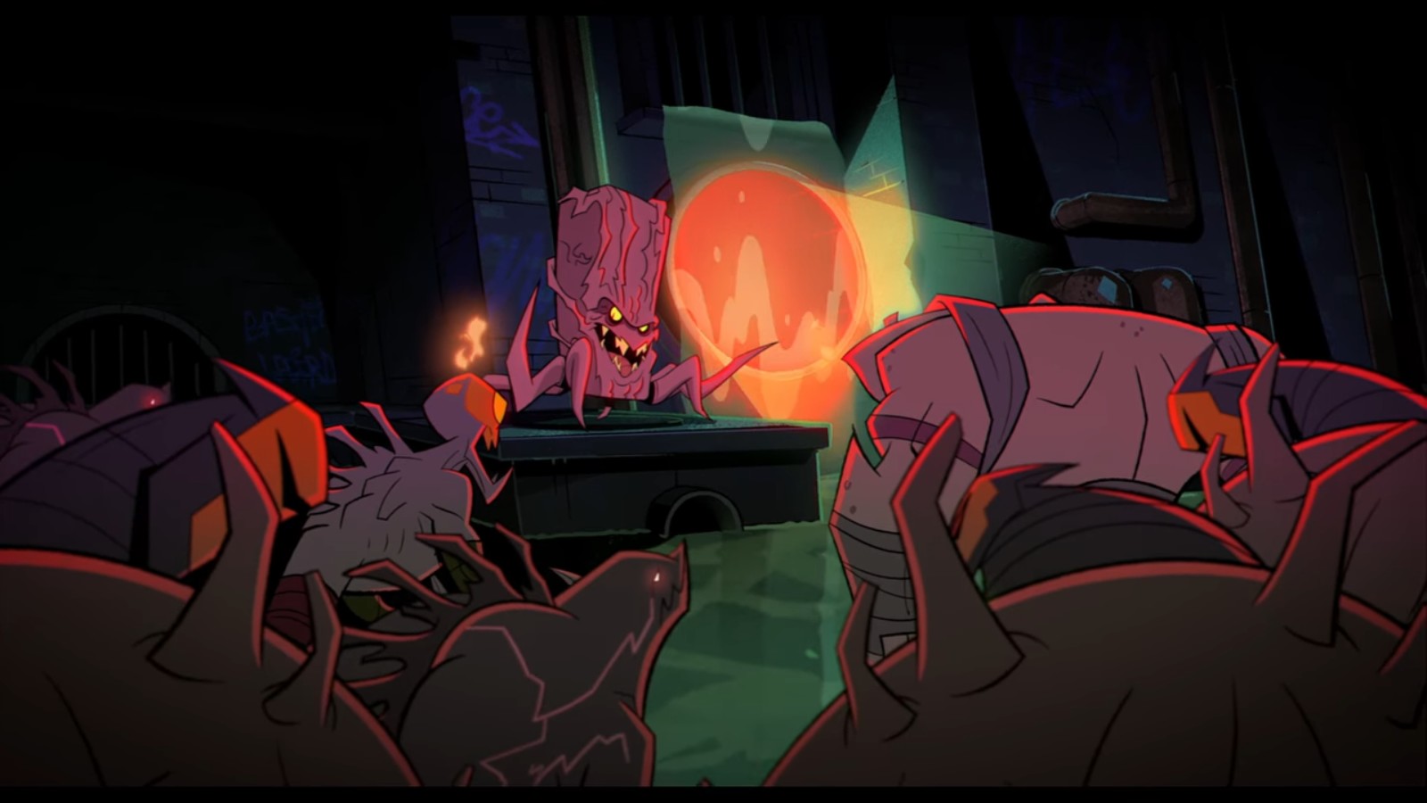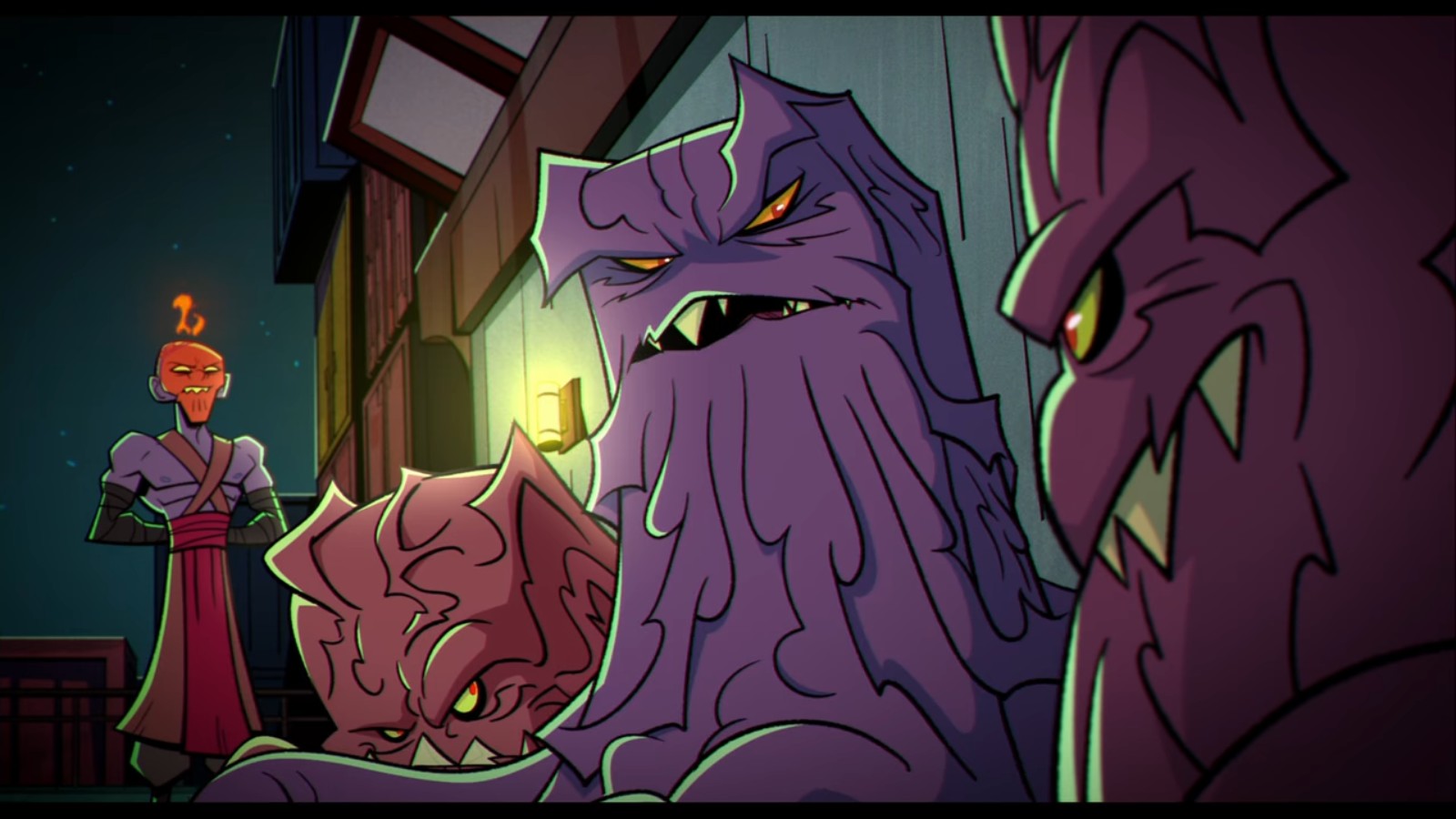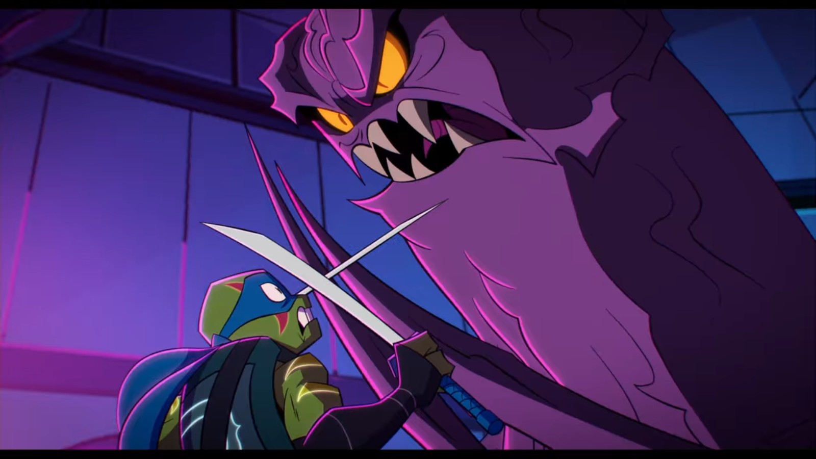 À sa sortie, il affronta les tortues, présentant immédiatement une grande menace. Il parvint à neutraliser les pouvoirs mystiques des quatre frères à l’aide d’un cri. Démunis, les ninjas bâtèrent en retraite, contre l’avis de Leonardo. Prenant conscience de l’importance de la clé du portail, le ninja fit tout pour le récupérer. Raphael lui vint en aide et fut capturé.