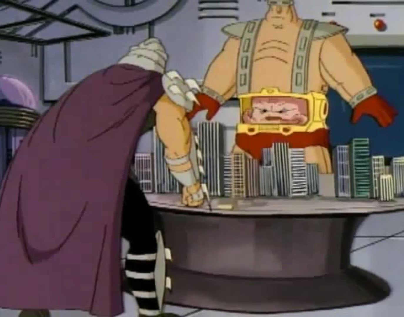 Caractéristiques : Extraterrestre de la Dimension X, banni par son cousin Kraang Subprime, et qui veut dominer la Terre et la Dimension X avec ses armées.