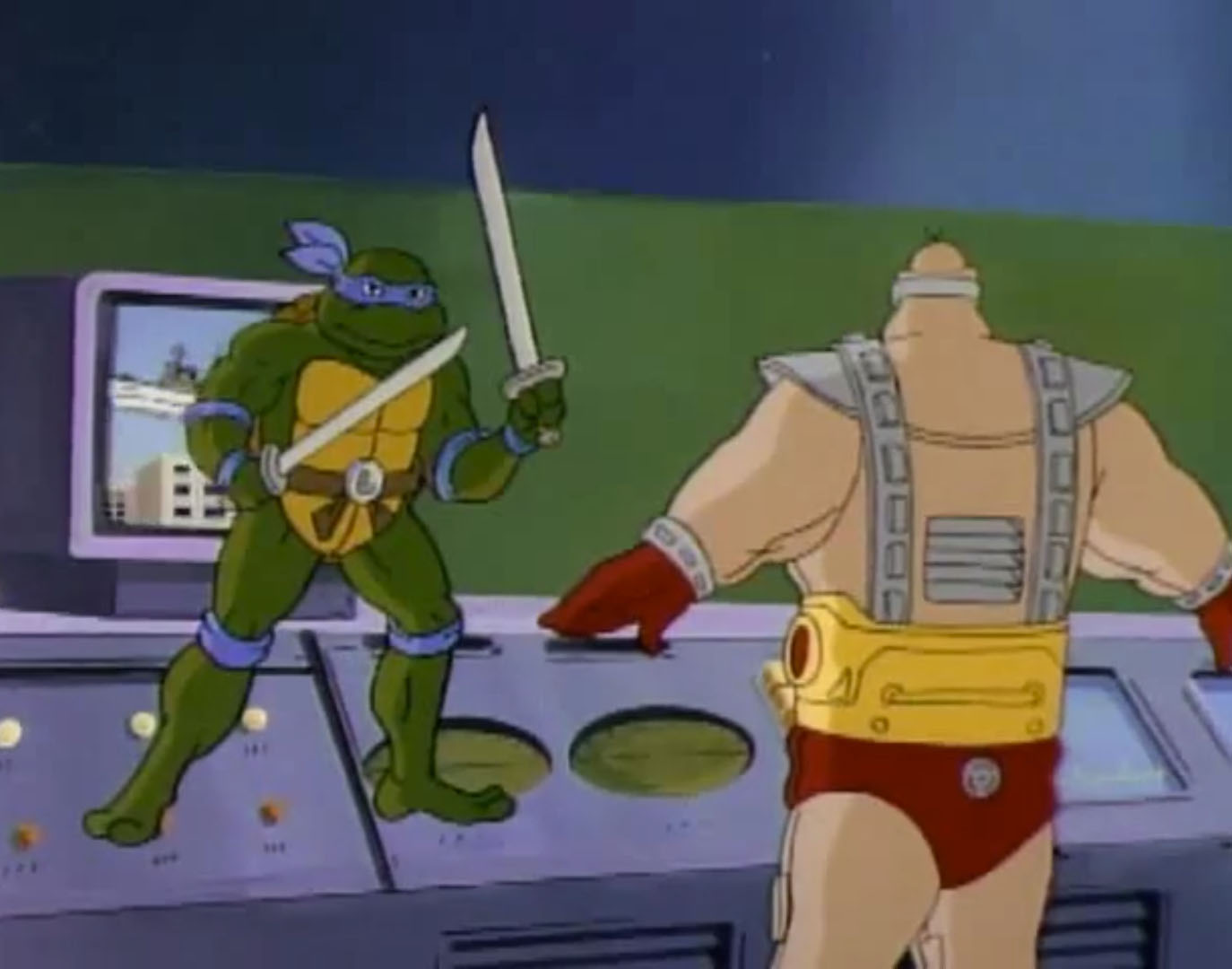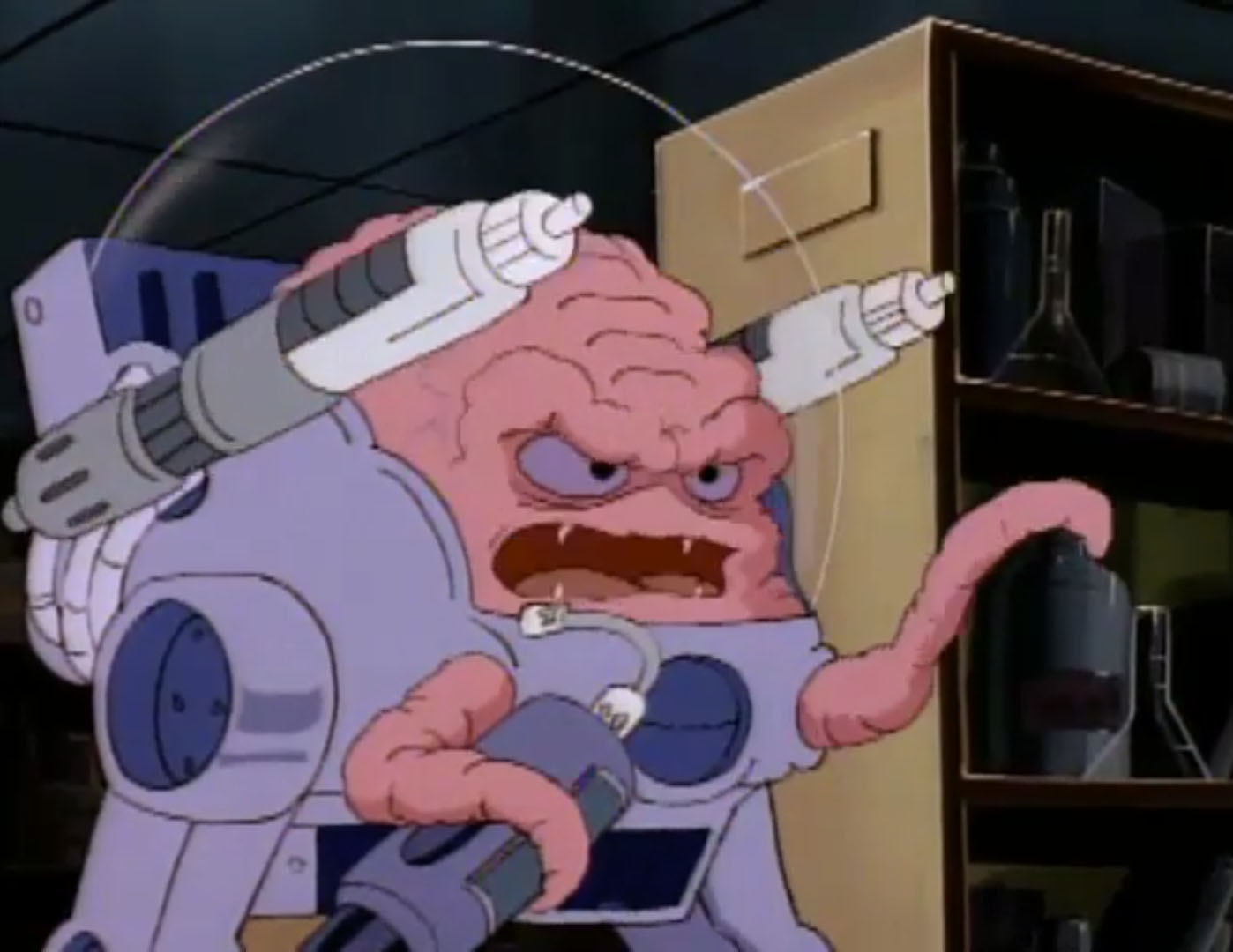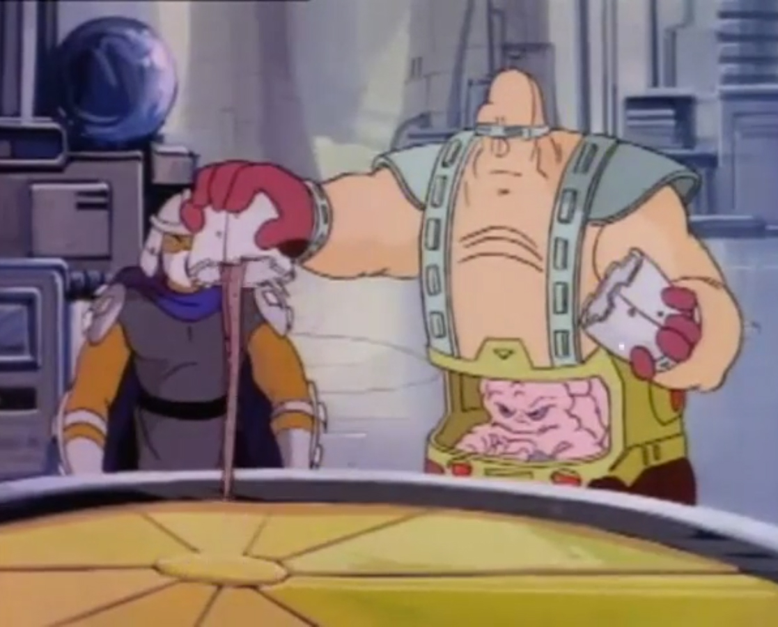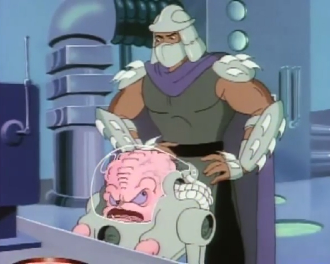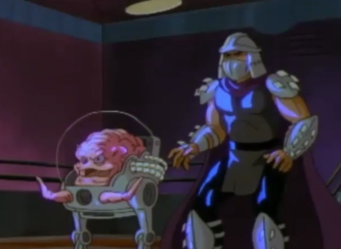 - La relation entre Krang et Shredder dans le dessin animé est très ambigüe. Les deux êtes maléfiques ont des ambitions similaires mais n’hésitent pas à tirer avantage de la situation, au détriment de l’autre. Dans l’épisode Les quatre mousquetaires (S3 E16),