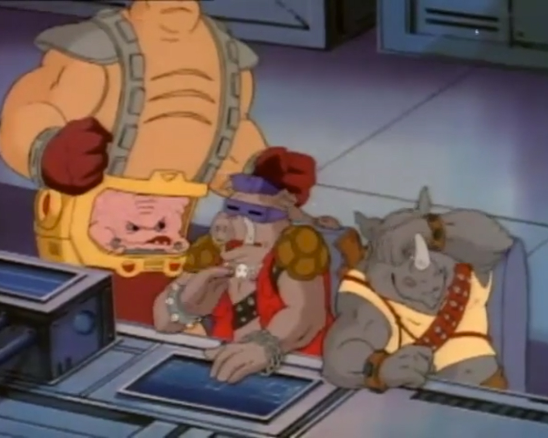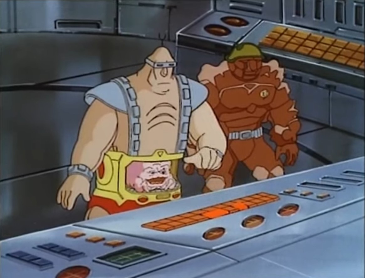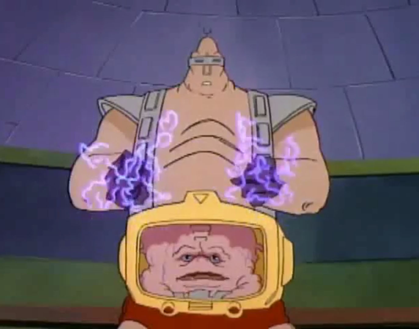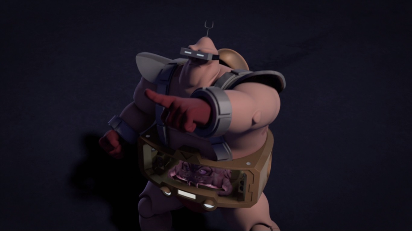 Après de nombreux échecs, Krang parvint finalement redémarrer sa sphère de combat, qui menaçait de tomber dans la lave, ne possédant plus la moindre énergie pour bouger. Ce furent Bebop et Rocksteady qui trouvèrent assez de puissance pour alimenter le Technodrome pour une première escapade à la surface (Des voleurs plein d’énergie, S3 E45).