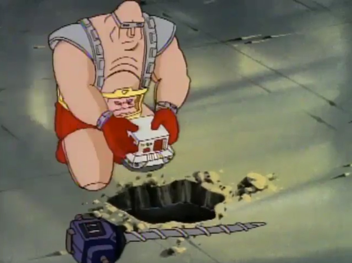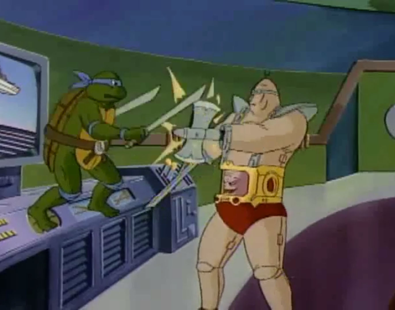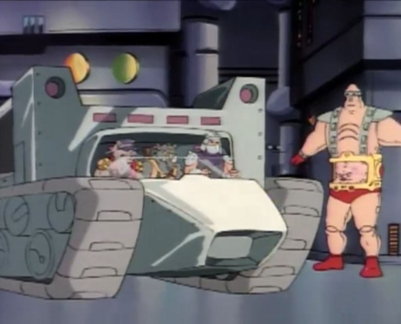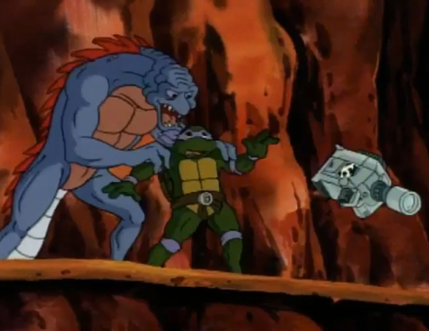 Après de nombreux échecs, Krang parvint finalement redémarrer sa sphère de combat, qui menaçait de tomber dans la lave, ne possédant plus la moindre énergie pour bouger. Ce furent Bebop et Rocksteady qui trouvèrent assez de puissance pour alimenter le Technodrome pour une première escapade à la surface (Des voleurs plein d’énergie, S3 E45).