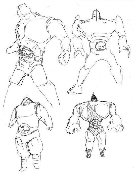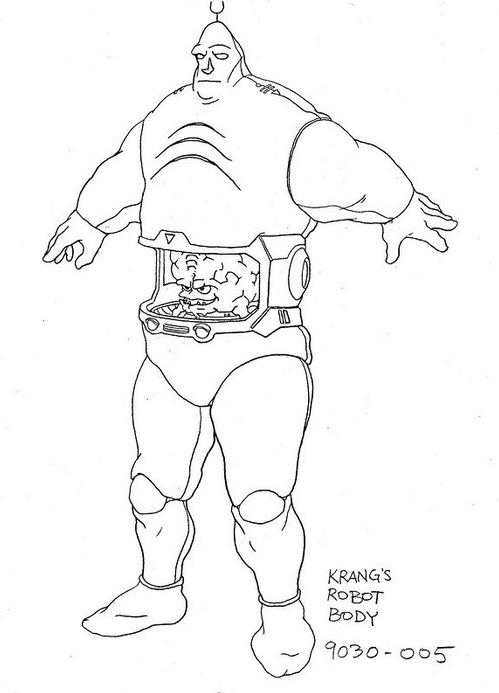 - Peter Laird adessiné en 1987 un corps androïde pour Krang dans les premières ébauches du personnage. Il est très différent de celui que nous connaissons dans la version finale.